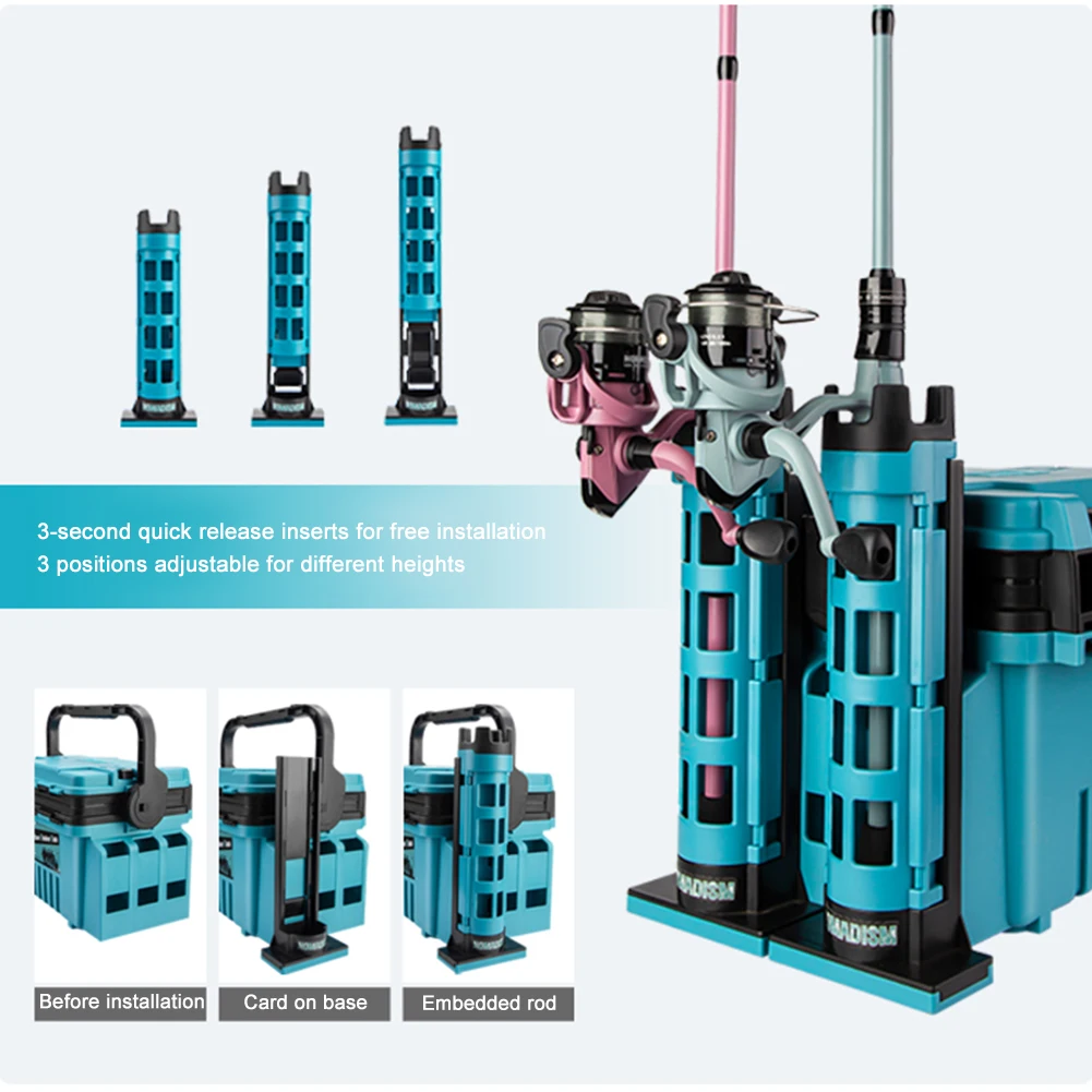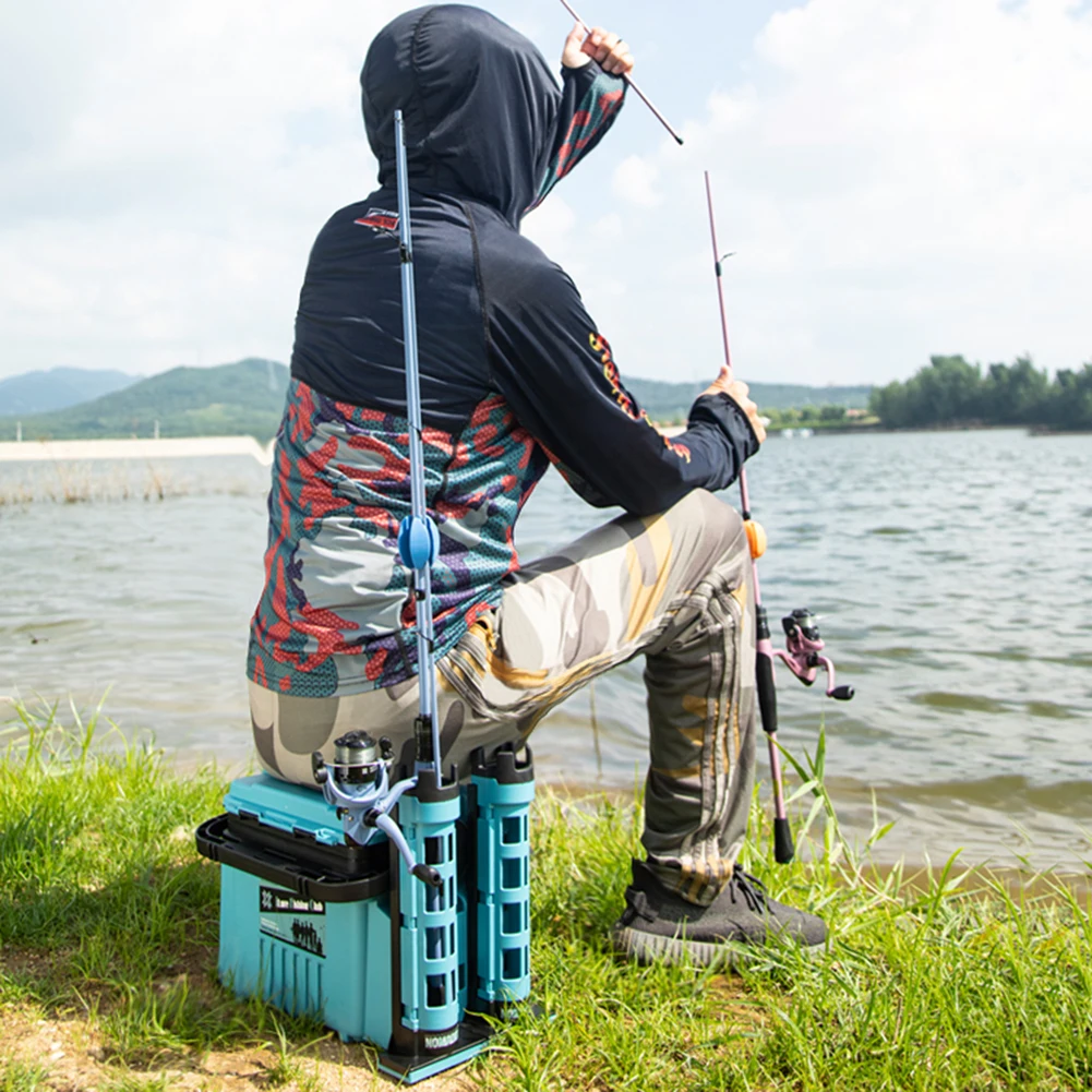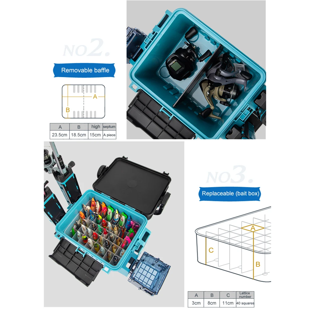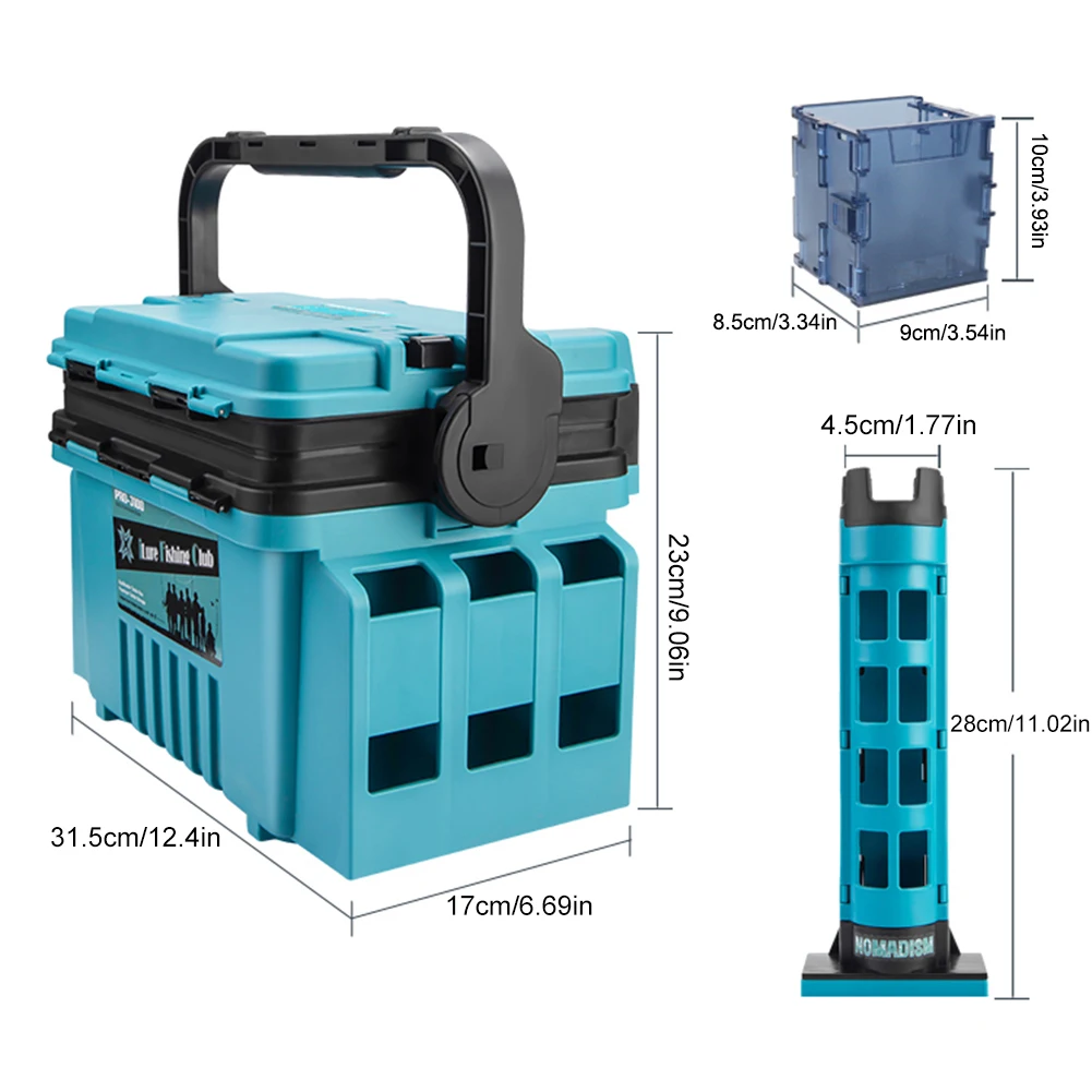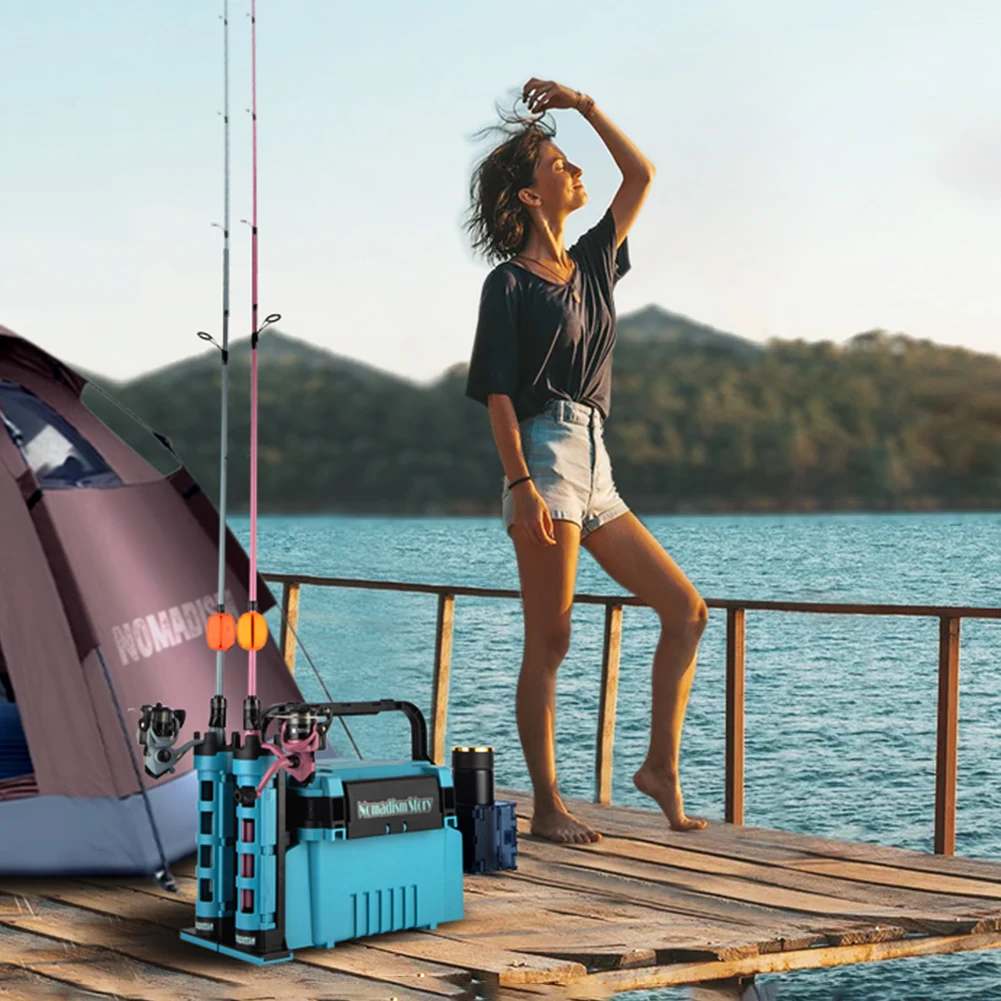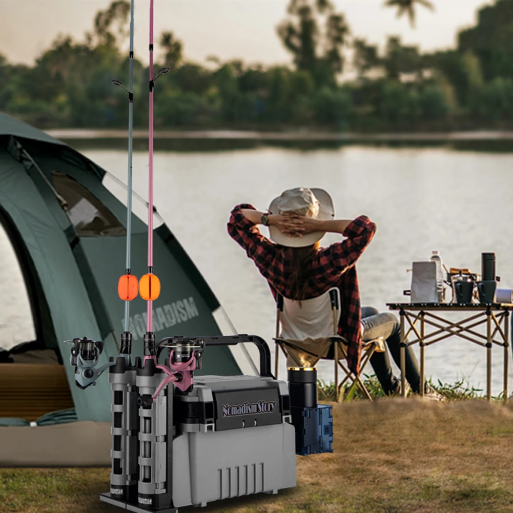 Fishing Tackle Box Set Big Fishing Tool Box Cup Holder Removable Dividers Fishing Lure Hooks Storage Box with Rod Holder Bucket LED Light Large Capacity Stand Rod Holder For Fishing for Hooks Lures