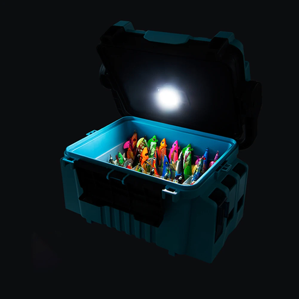 Feature: 1. Night Fishing Kit: One complete set meets all your needs with an LED light big fishing tool box, perfect for night fishing. Let you have a perfect fishing experience. 2. Outdoor Lighting Function: The outdoor light of fishing hardware toolbox serves as illumination for night fishing, providing extra light for glow-in-the-dark lures like shrimp, iron plates, and ice fishing hooks. 3. Bait Storage Compartment: The fishing lure hooks storage box features a vertical storage compartment that can hold up to 40 shrimp baits, as well as hard lures and iron plates for sea fishing. It can also be used separately as a bait box. The bottom includes drainage holes for easy cleaning of used baits and accessories. 4. Dual-Layer Design: The plastic handle fishing box has a two-layer design with adjustable compartments, allowing you to customize the space according to your needs. 5. Quick-Release Clip for Easy Assembly: The large capacity stand rod holder features a quick-release clip that allows for effortless assembly in just three seconds, eliminating the need for complicated installation processes. Specification: Product Material: ABS Product Color (Optional): Grey, Green, Blue Dimensions: Fishing Box Size: 315 MM/12.4 In X 230 MM/9.06 In X 170 MM/6.69 In Note: Due To The Different Monitor And Light Effect, The Actual Color Of The Item Might Be Slightly Different From The Color Showed On The Pictures. Thank You! Please Allow 1-2 CM Measuring Deviation Due To Manual Measurement.