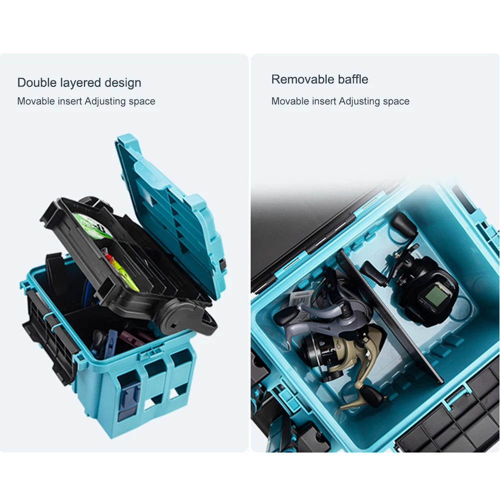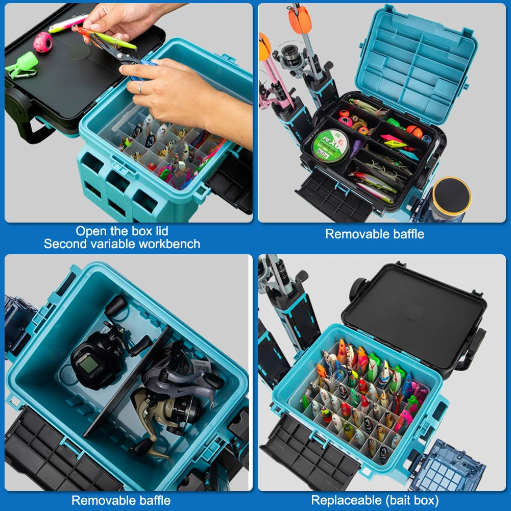 Fishing Tackle Box Set Big Fishing Tool Box Cup Holder Removable Dividers Fishing Lure Hooks Storage Box with Rod Holder Bucket LED Light Large Capacity Stand Rod Holder For Fishing for Hooks Lures
