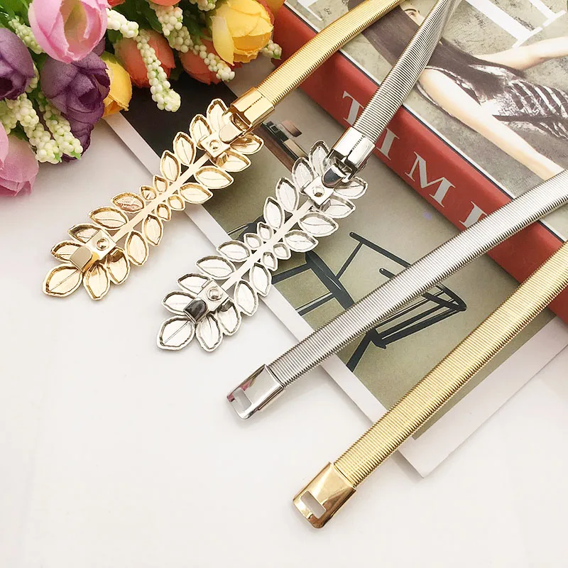 Description Description This fashionable metal belt is much worth owning for its chic LEAVES shaped clasp front and stretchy design. View AllClose