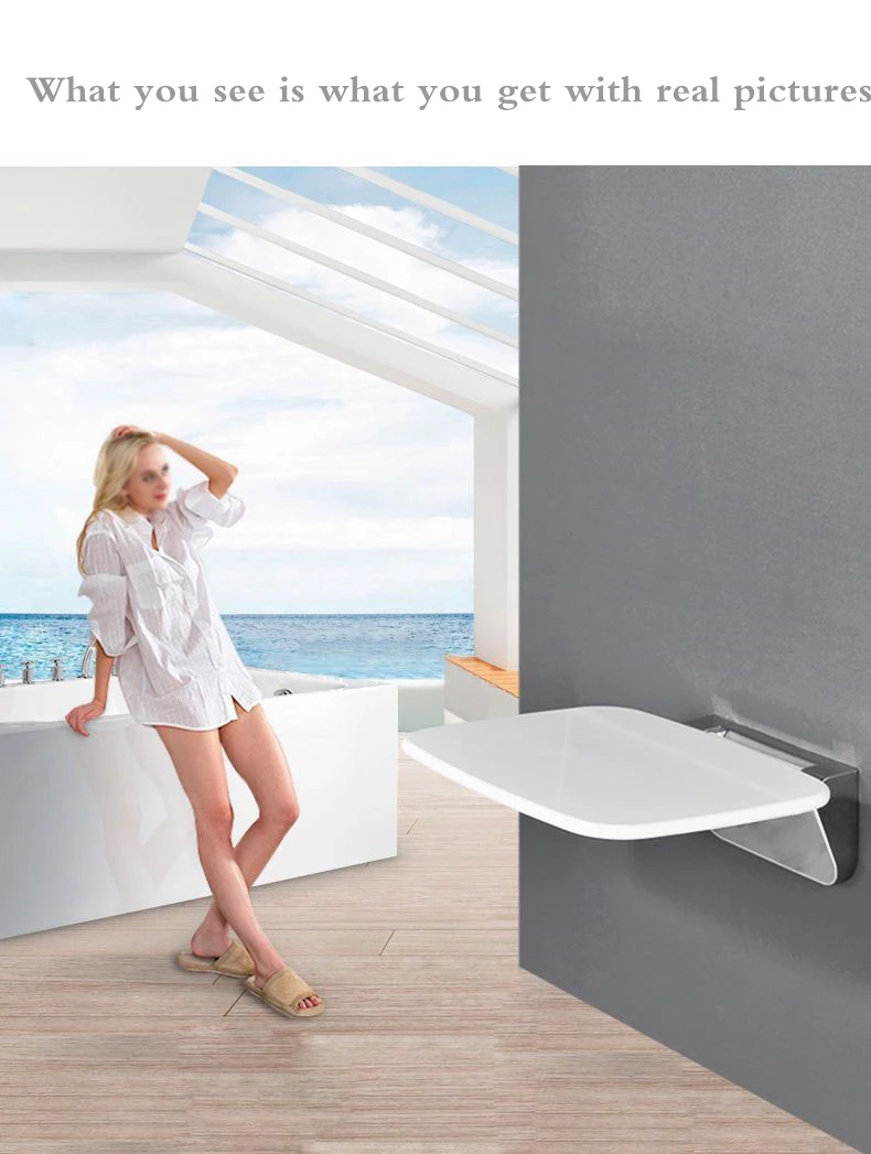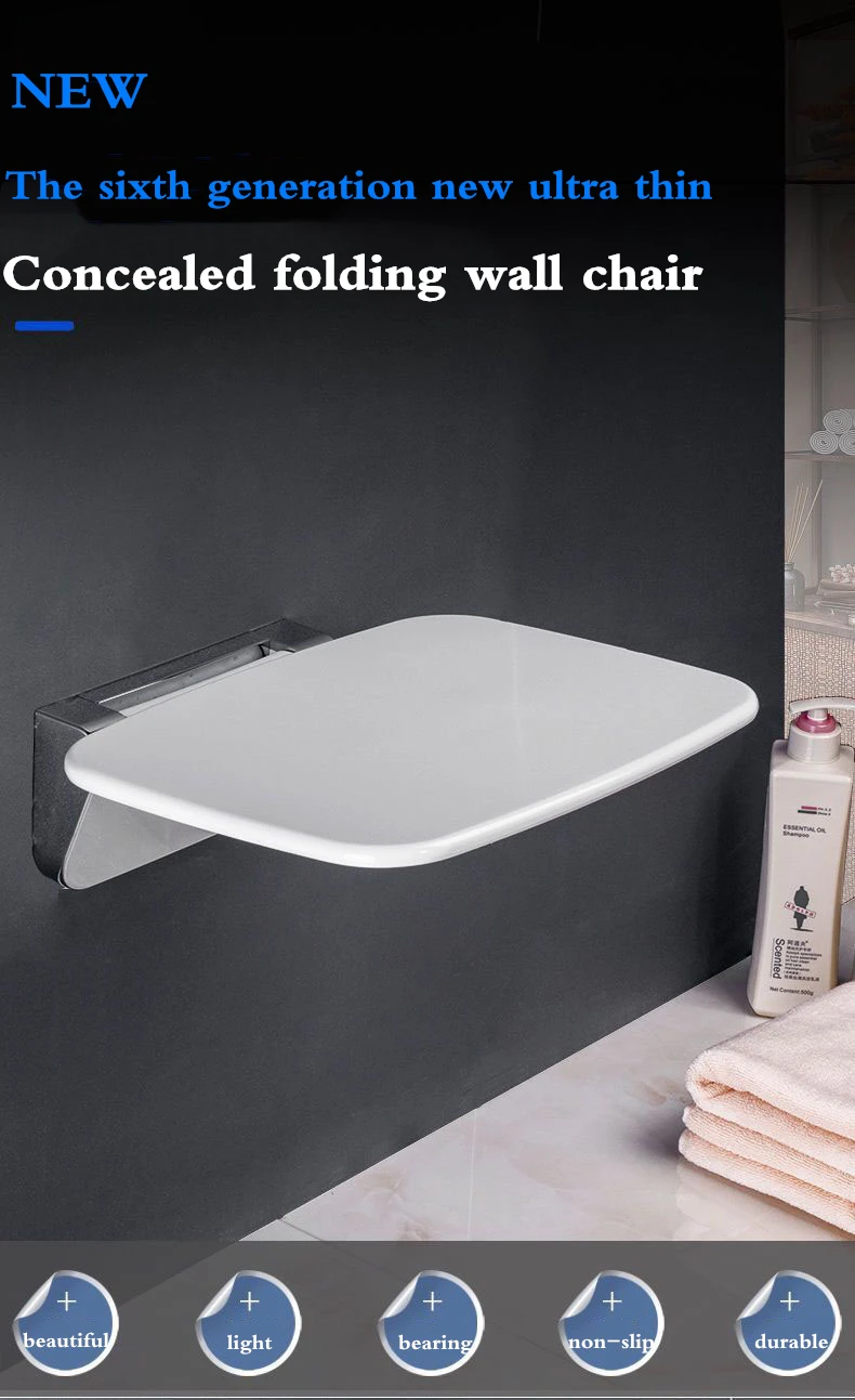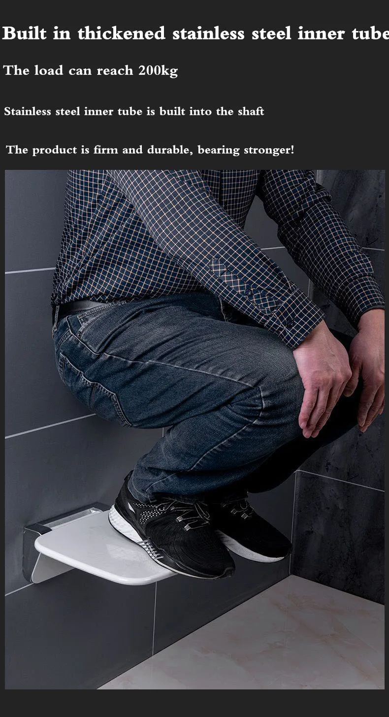 1.Installed in public places: convenient and fast, it can meet the needs of various groups of people. 2.Installed in bathroom:Suitable for the elderly, pregnant women, not long standing crowd. 3.Installed at the door:It can be used as a shoe changing stool and can be folded up when not in use, saving space. 4.Ultra thin, can be hidden behind the door:Humanized design, can be installed at the door to use, to meet the inconvenience of changing shoes at the door! Completely hidden behind the door.