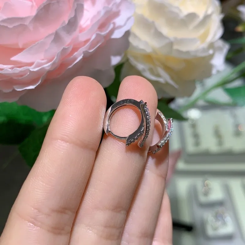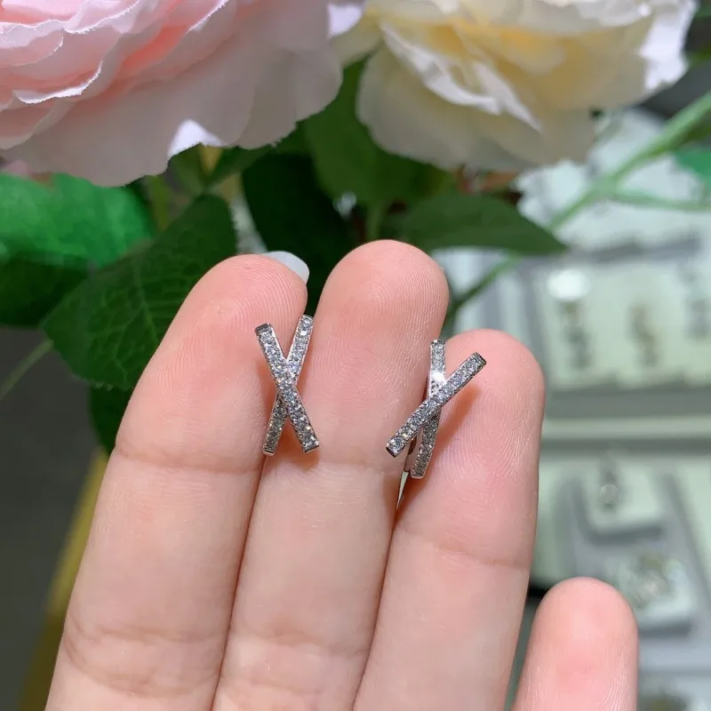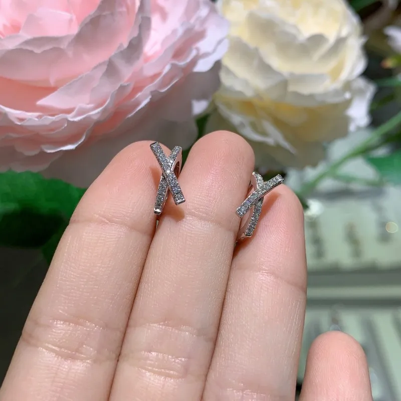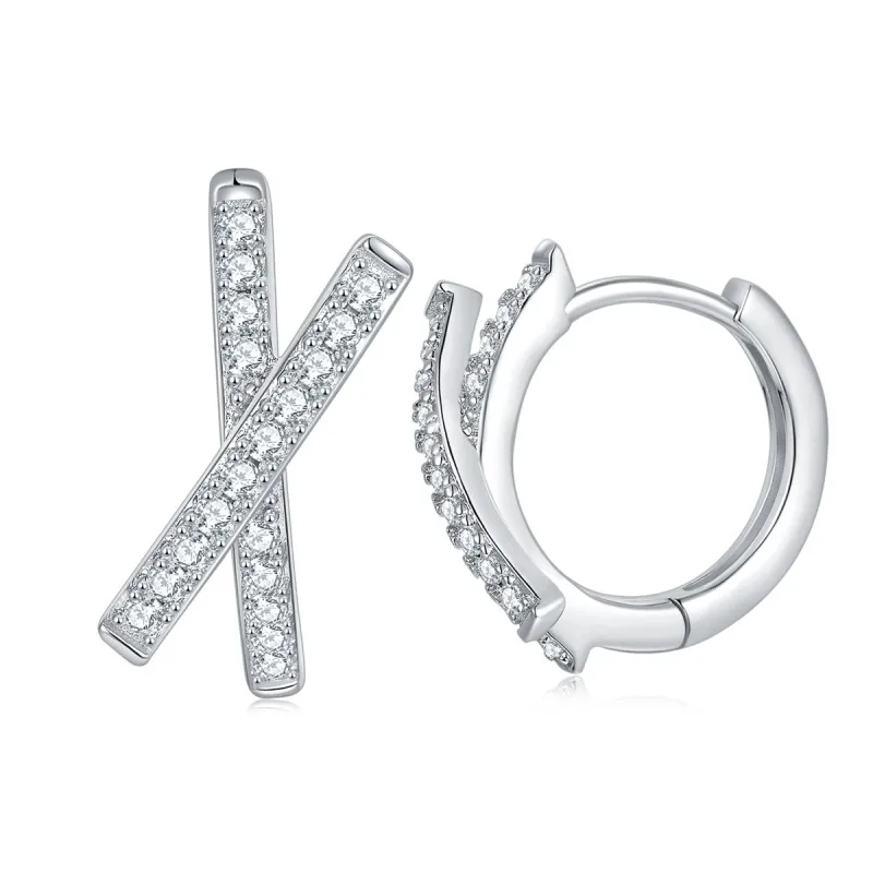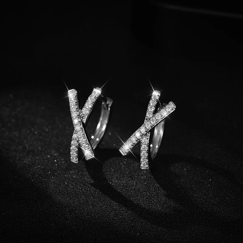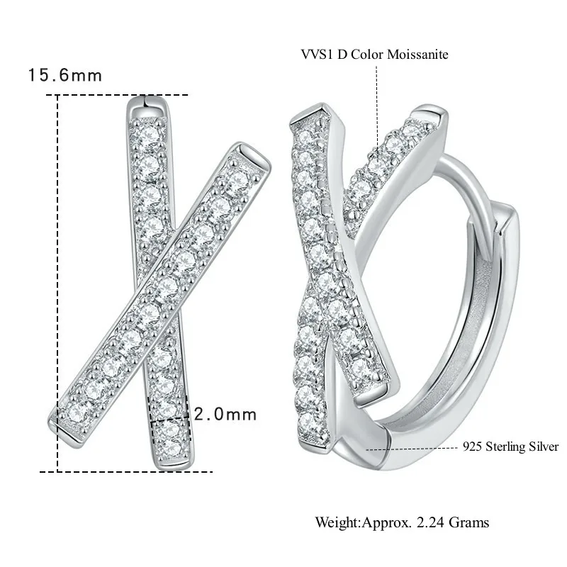 Follow Cloud Total 0.3CT Real Moissanite Hoop Earrings for Women Cross Wedding Sparkling 925 Sterling Silver Simulated Diamond
