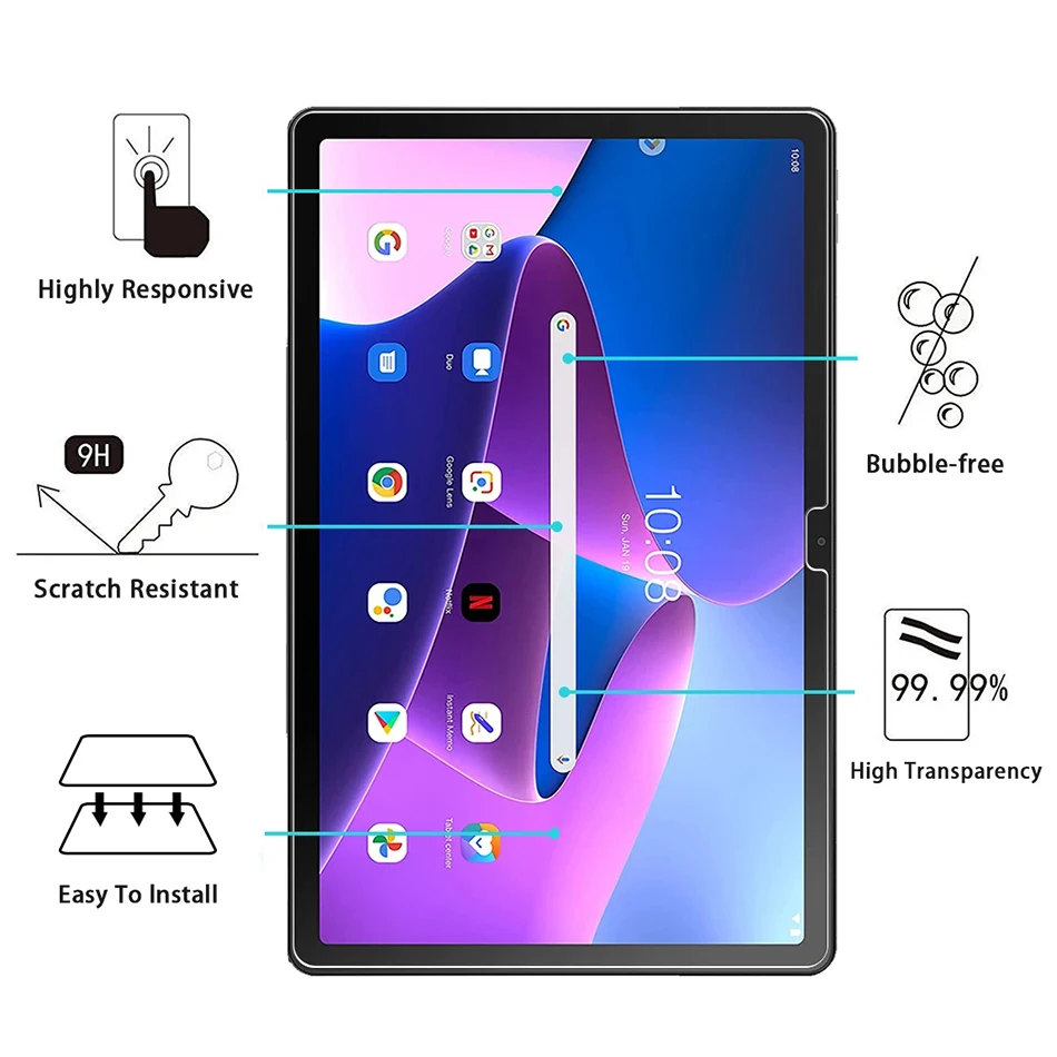 • For Lenovo Tab M10 Gen 3 2022 Tempered Glass Screen Protector 3rd Gen 10.1 Inch Tablet Proof Protective Film TB-328XU TB-328FU