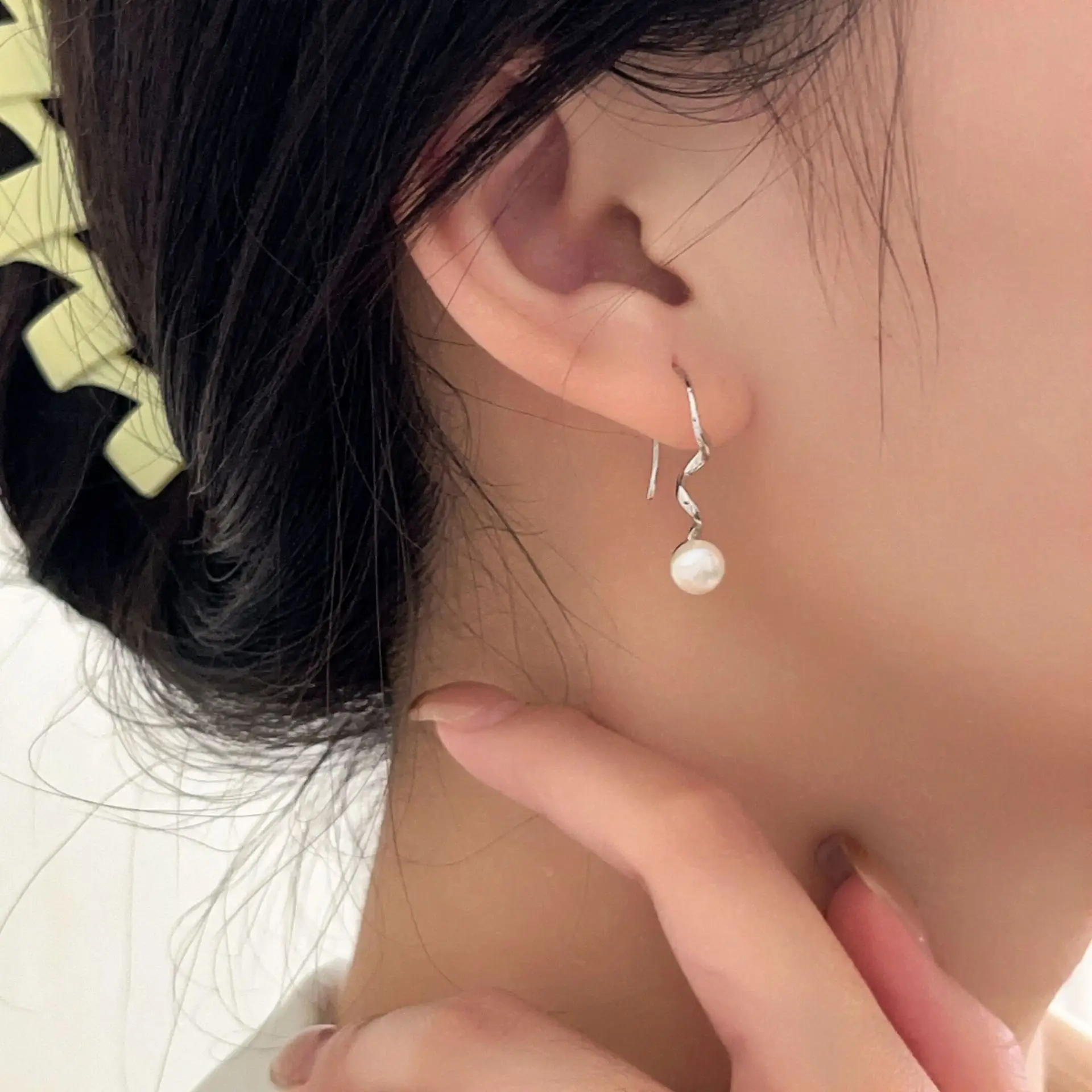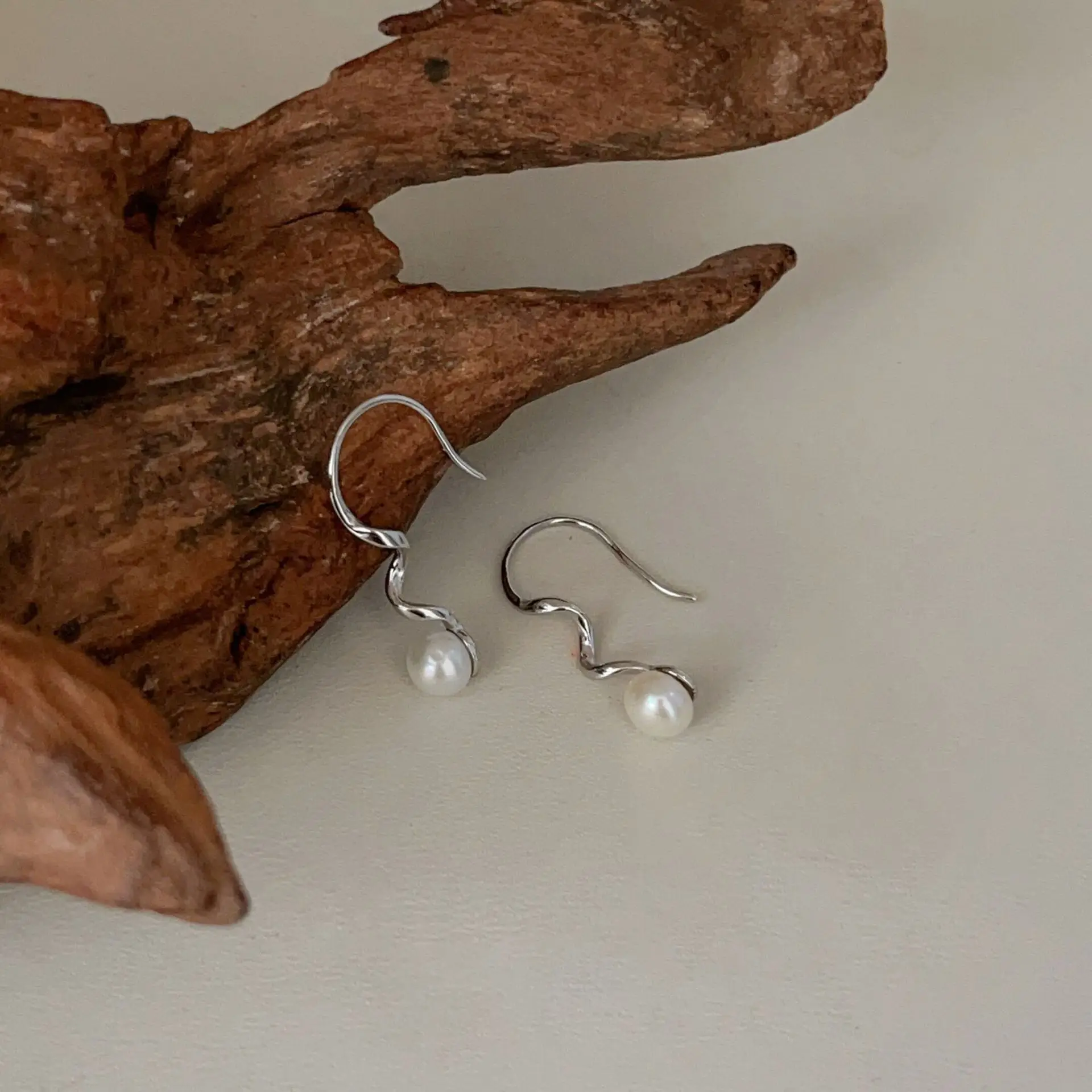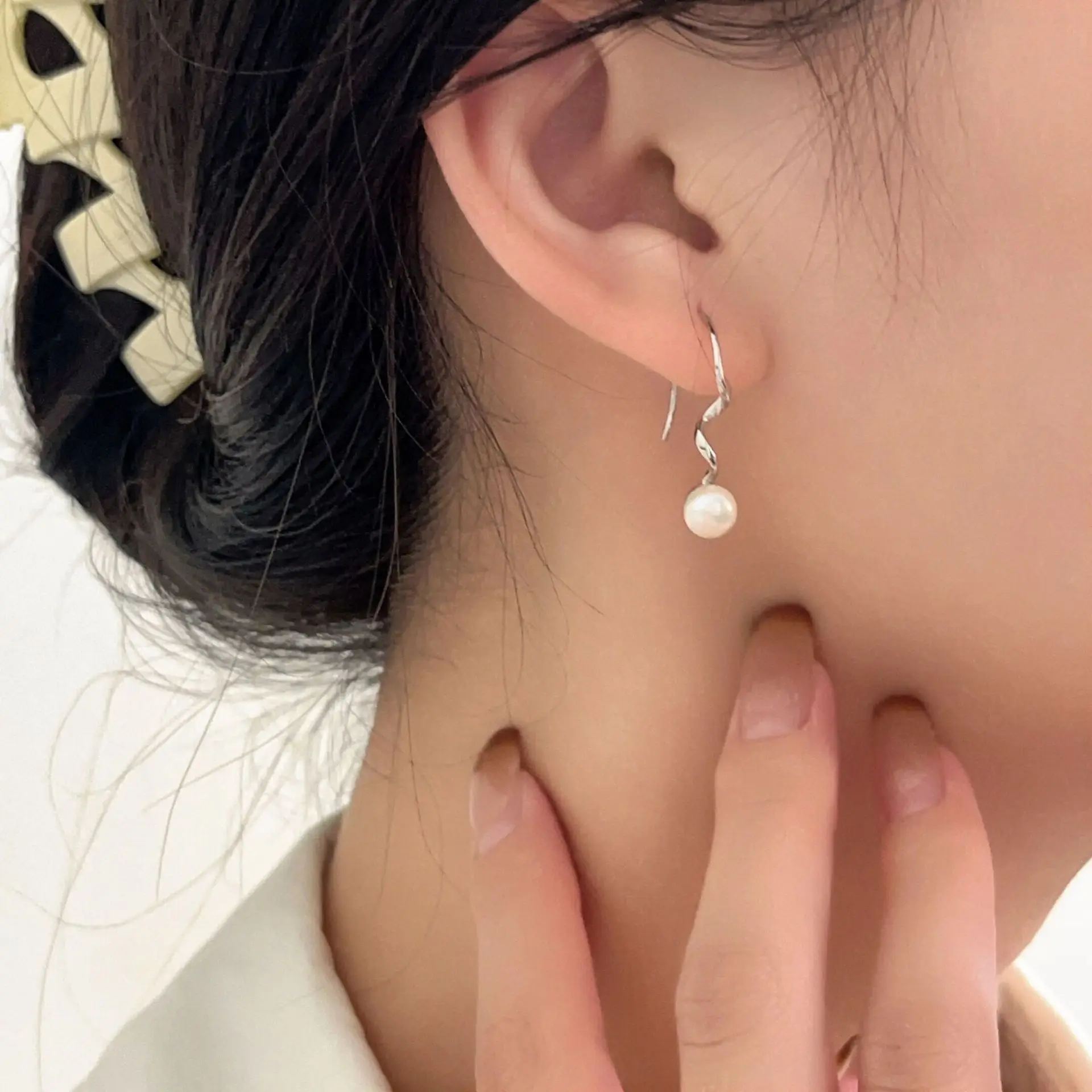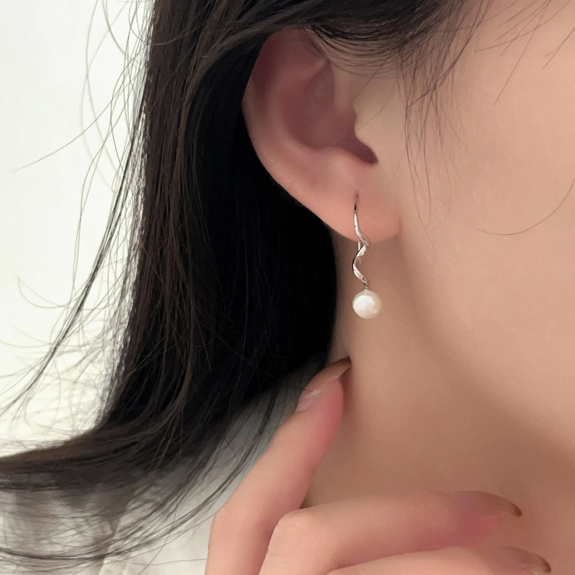 Freshwater Pearl Drop Dangle Earrings Sterling Silver Stylish Elegant Unique Design Rotate Tassel Hanging Earrings Jewelry for Women