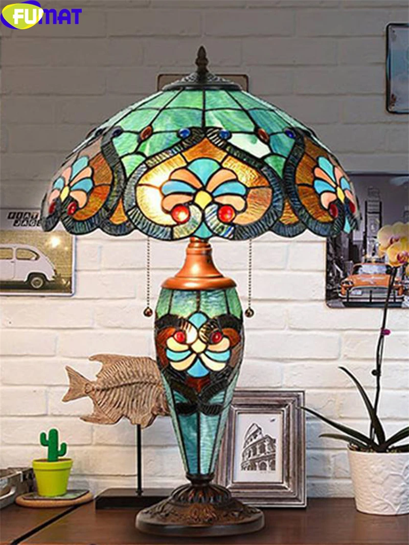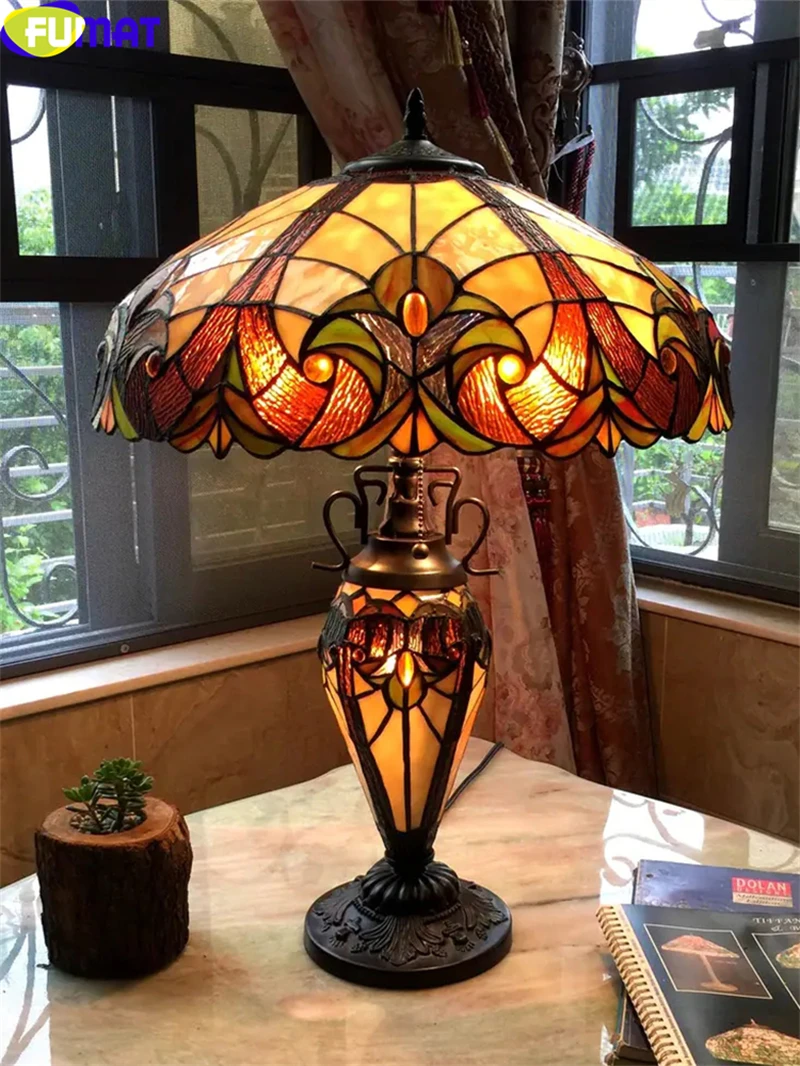 FUMAT Tiffany art lighting(Tiffany Lamp),Inherited the original style of the 19th Century American art master TIFFANY.Integrating modern and modern techniques with Elegant and classical interesting.It embellished a gentle and elegant style for modern life.With high color glass inlay welding,all handmade,with rich color,exquisite workmanship,smooth and generous design,light and beautiful,styling and luxurious,lighting life enthusiasm for you,releasing extraordinary light!Tiffany glass lamps are considered part of the Art Nouveau movement,it is not only home furnishing,but also can be kept as collectibles.