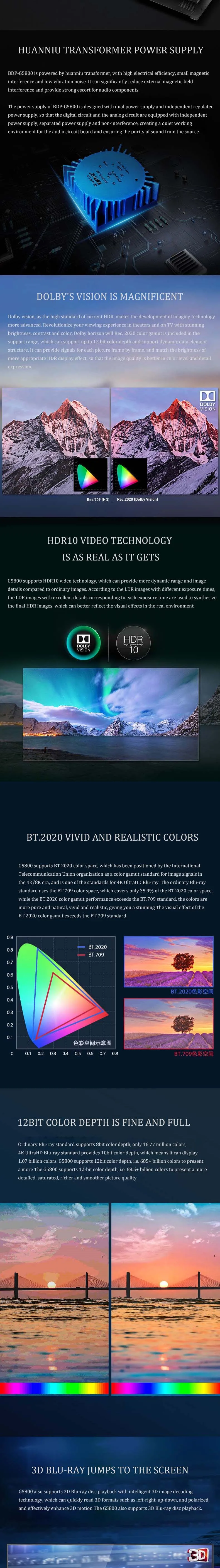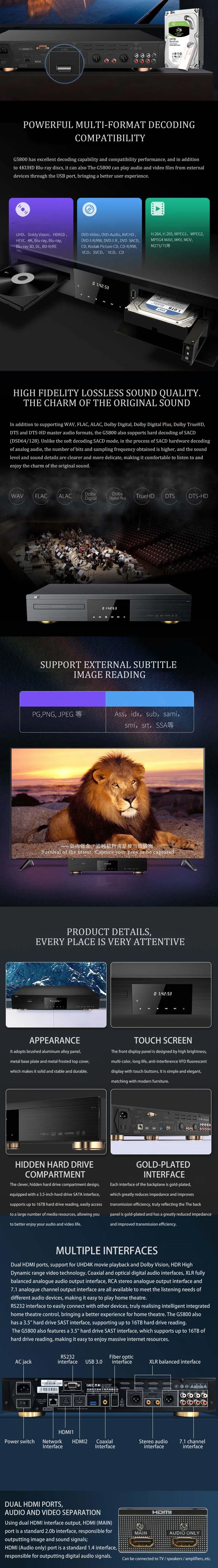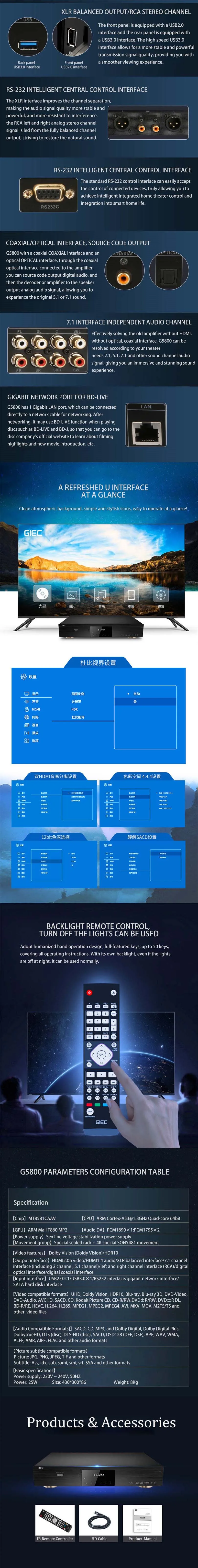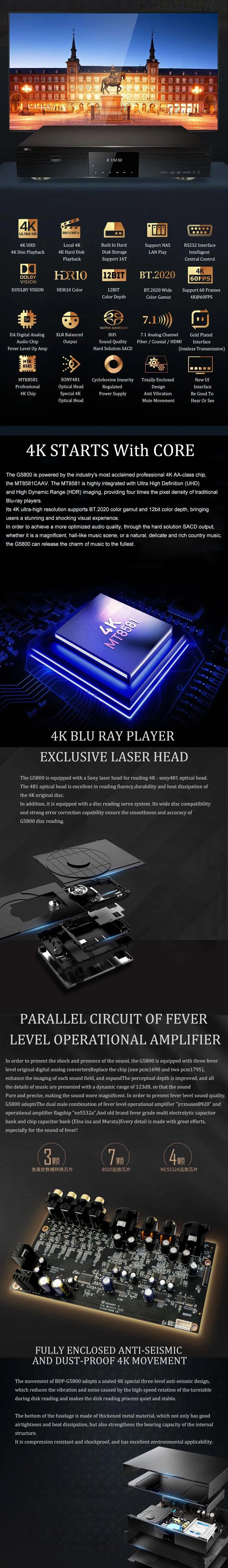 1. Genuine TNT enhanced jailbreak, approved by the official warranty. 2. Supports DVD, BD, 4K Blu-ray discs, Blu-ray region code modification, and Blu-ray playback in all regions. 3. Remove CINAVIA mute watermark restriction. 4, Support larger 16T hard disk capacity to read and play. 5. Supports full navigation playback of original disk files such as UHD 4K.ISO, BD.ISO, BDMV, etc., and the effect is like a disc. 6. DVD.ISO video image file full navigation playback, the effect is the same as the disc. 7. Support lossless DSD, DSF, DFF, SACD and other music files playback. 8. Support music CUE track files, selection and playback. 9. support NFS, SMB, DLNA, and other NAS LAN sharing functions. 10. Support AS, SSA, SRT and other special effects subtitle plug-ins.