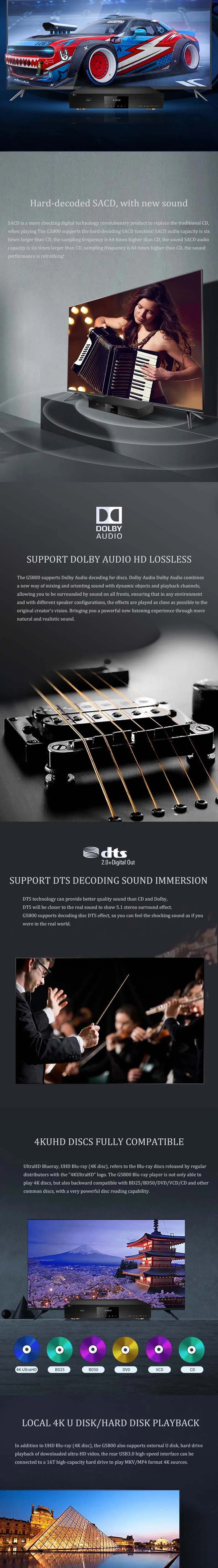 | Audio compatible formats | SACD, CD, MP3, and Dolby Digital, Dolby Digital Plus, Dolby trueHD, DTS (disc), DTS-HD (disc), SACD, DSD128 (DFF, DSF), APE, WAV,WMA, ALFF, AMR, AIFF, FLAC and other audio formats | | | ||