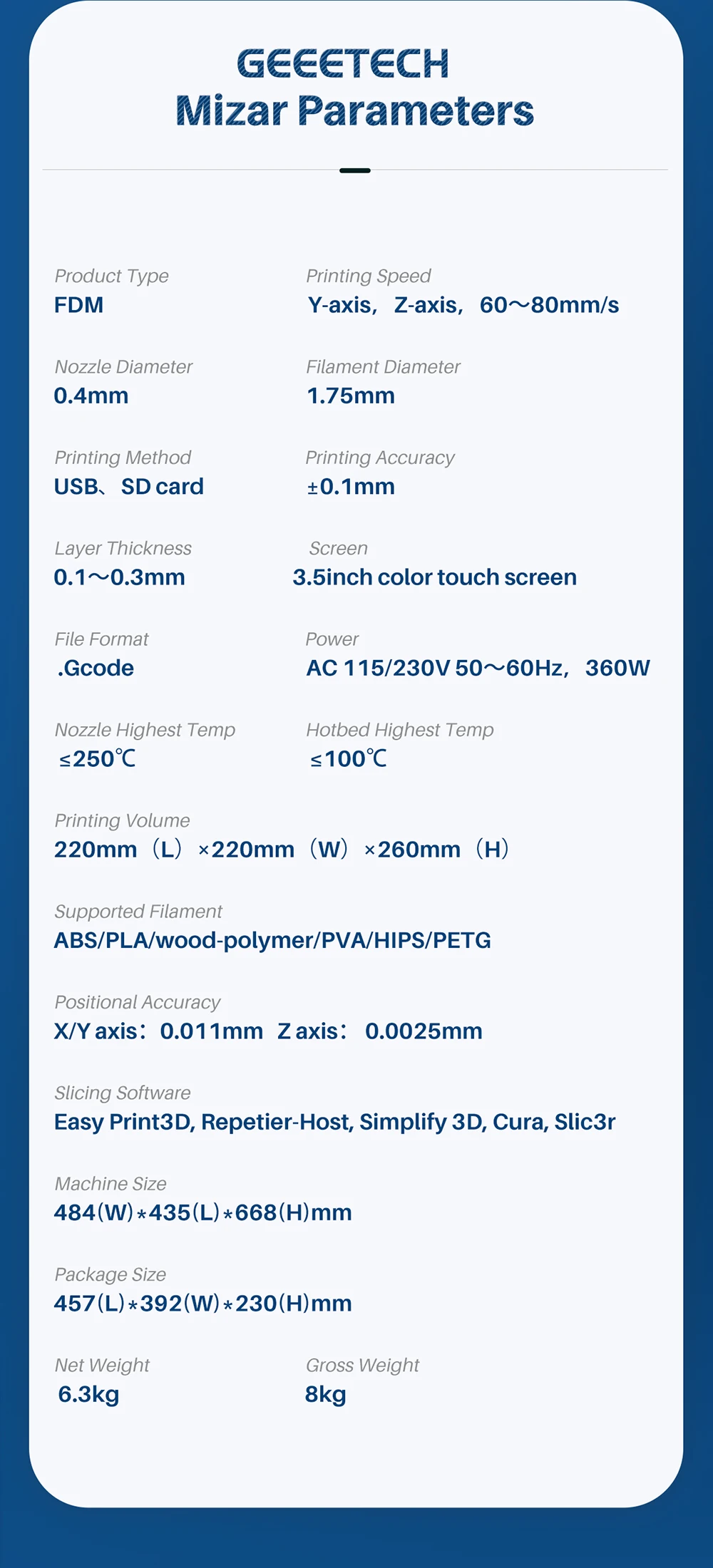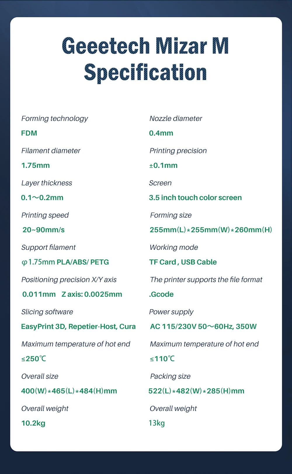 【Large print volume】Mizar M has a print volume of 255*255*260mm;