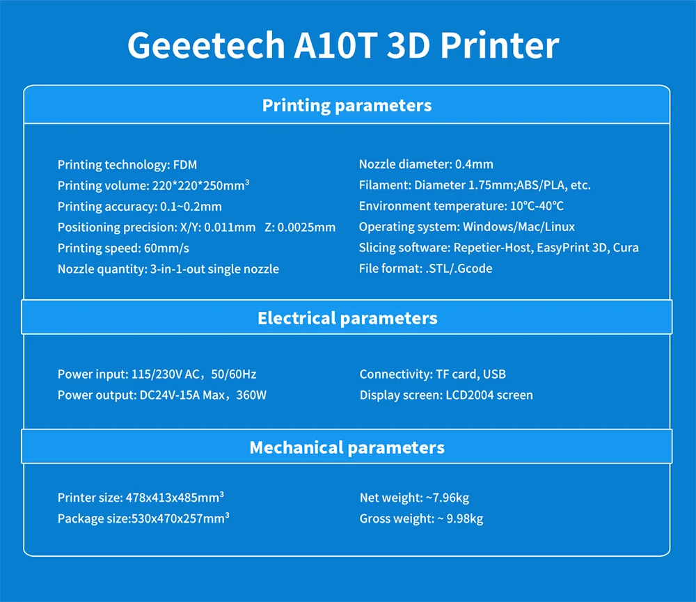 【Large Printing Area】A10M Keeping Prusa I3 Printer gantry with 220*220*260mm³ makes the best of the building platform guaranteeing excellent printing quality for big printing project.