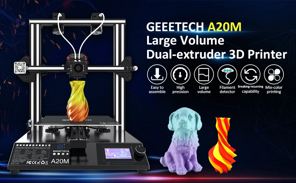 1.[GT2560 Motherboard] Geeetech A20M 3D Printer with Open Source GT2560 Control Card With 2 extruders, 2 in 1 out hot end, adjustable mixed colour printing with different colour ratios.