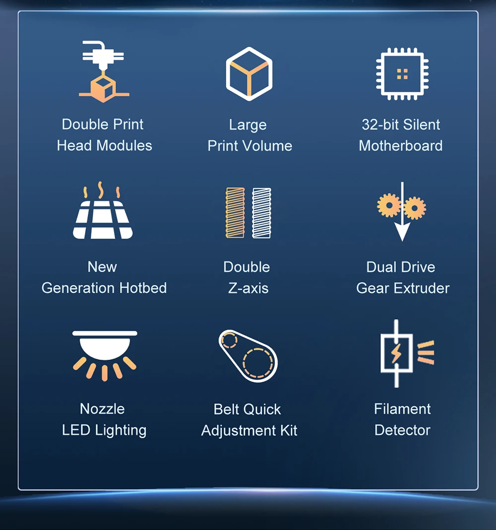 【Fast-Assembly】A10M Mix-Color 3D Printer come with 90% Pre-assembly, the modularized design provide you with easier assembly.