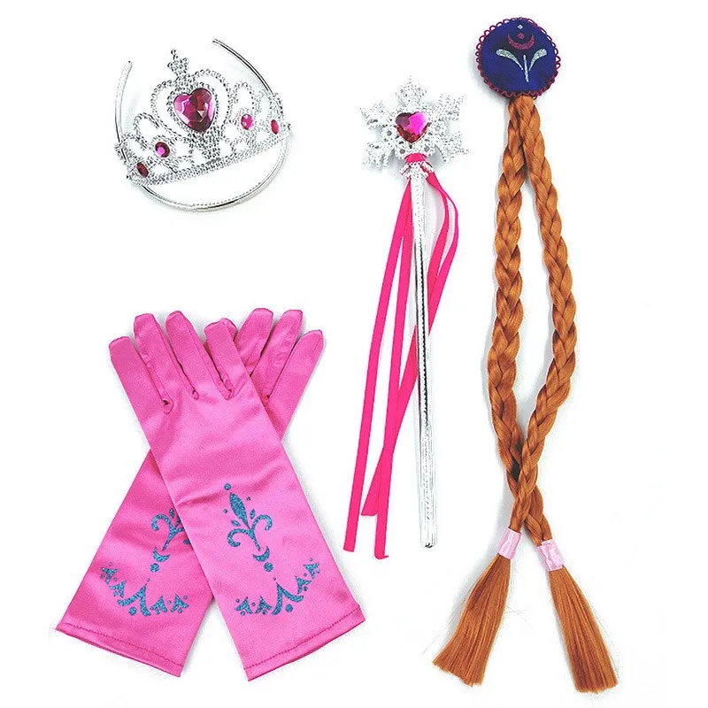 Name: Girls Elsa Anna Accessories Set Kids Party Cosplay 4 Piece Set Snow Queen Snowflake Magic Wand Tiara Crown Gloves Wig Braid