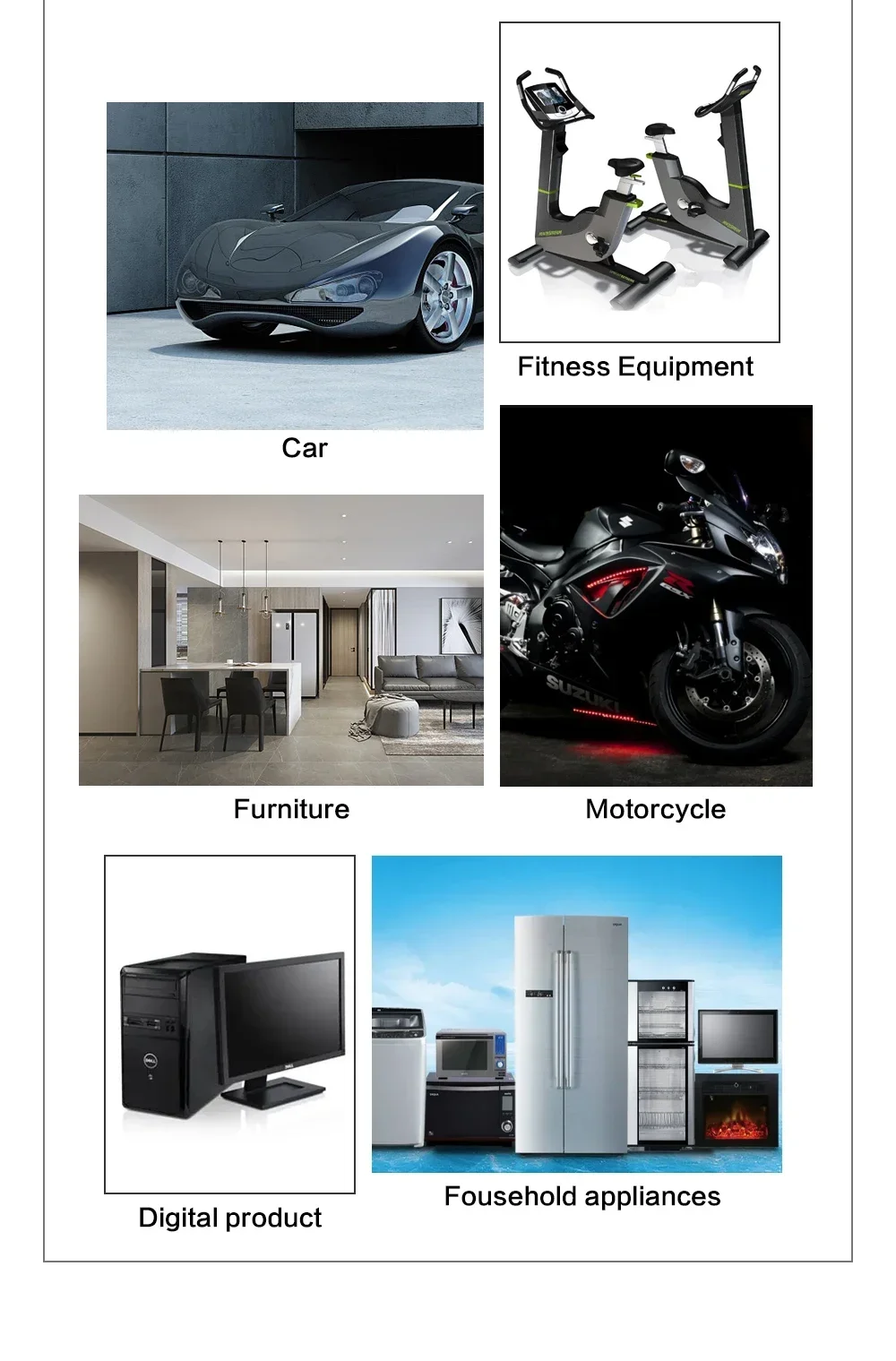 3.Car interior,home decoration,cabinets,Walls ect.