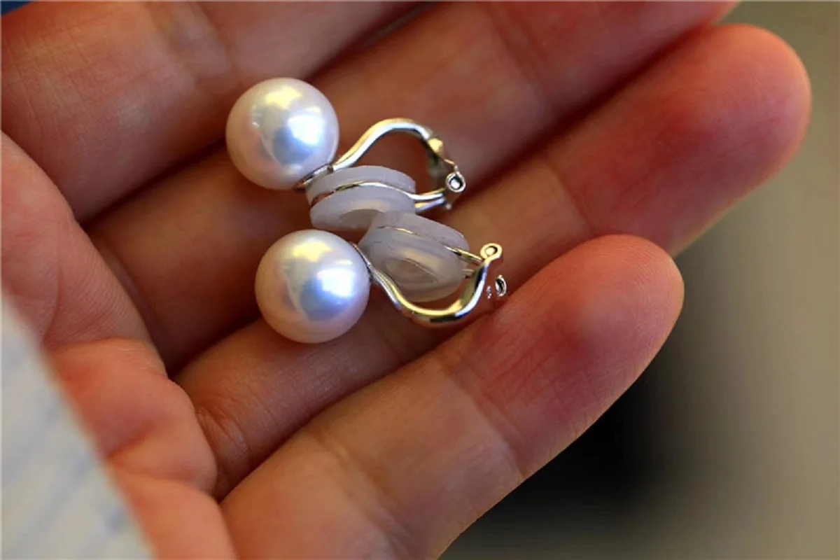 Gorgeous AAAA++++ REAL NATURE 6-7mm 7-8mm 8-9mm South China Sea White Round Pearl Earrings No ear holes, wearing