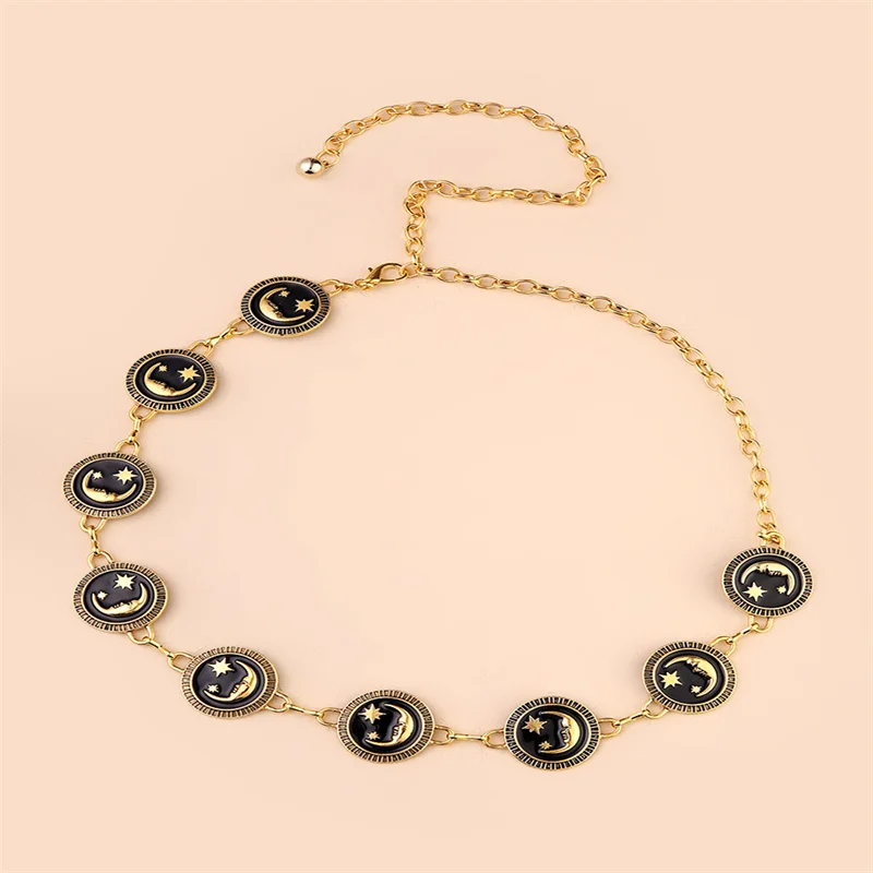 Choose Options Quick view Fashion Harajuku Punk Moon Metal Belts Women Vintage Punk Gothic Moon Sun High Waist Chain Belts Pendant Belt $1,189.00 - $1,435.78 Description:Material: Metal with chain,comfortable and durable,easy to wear.Adjustable size fits most. You c