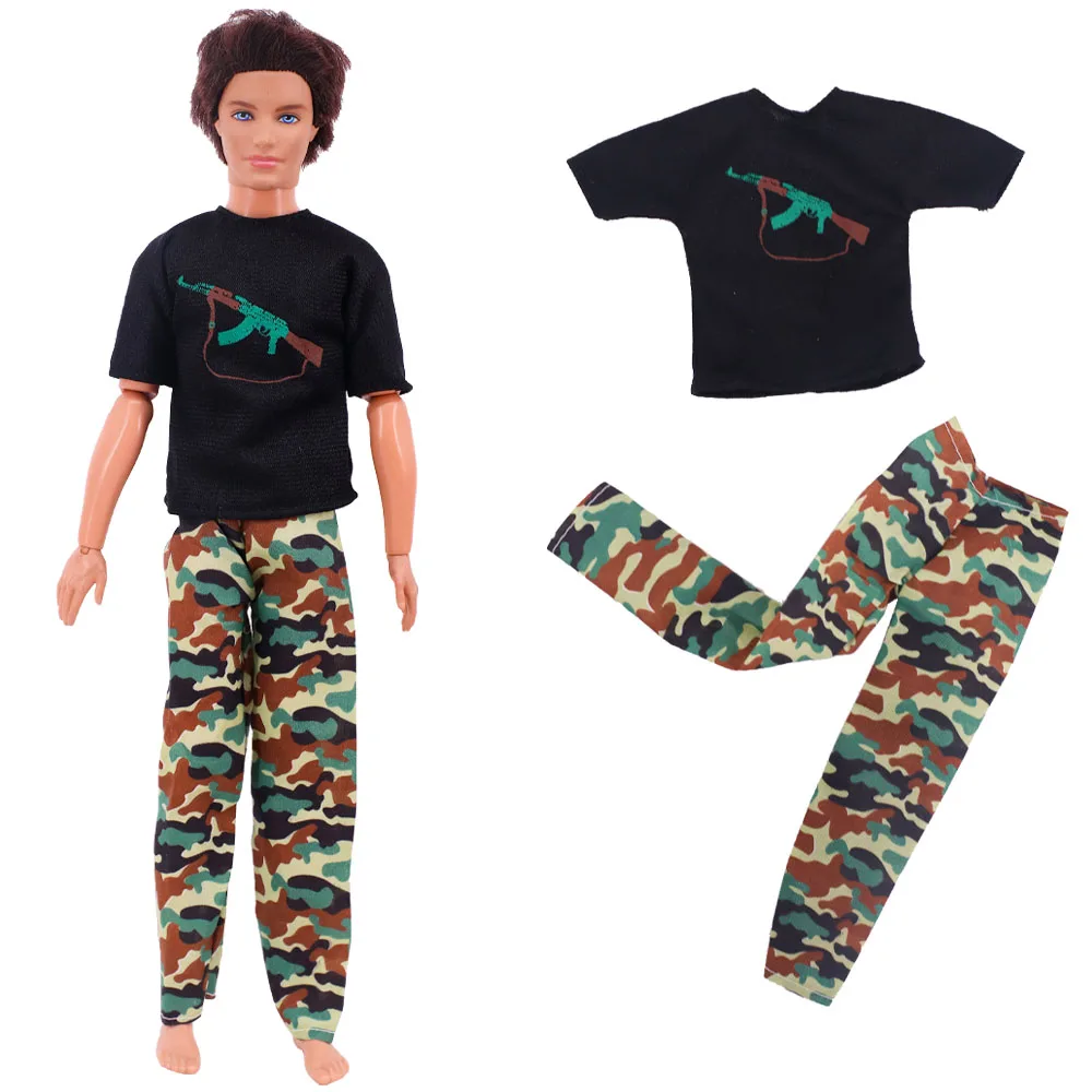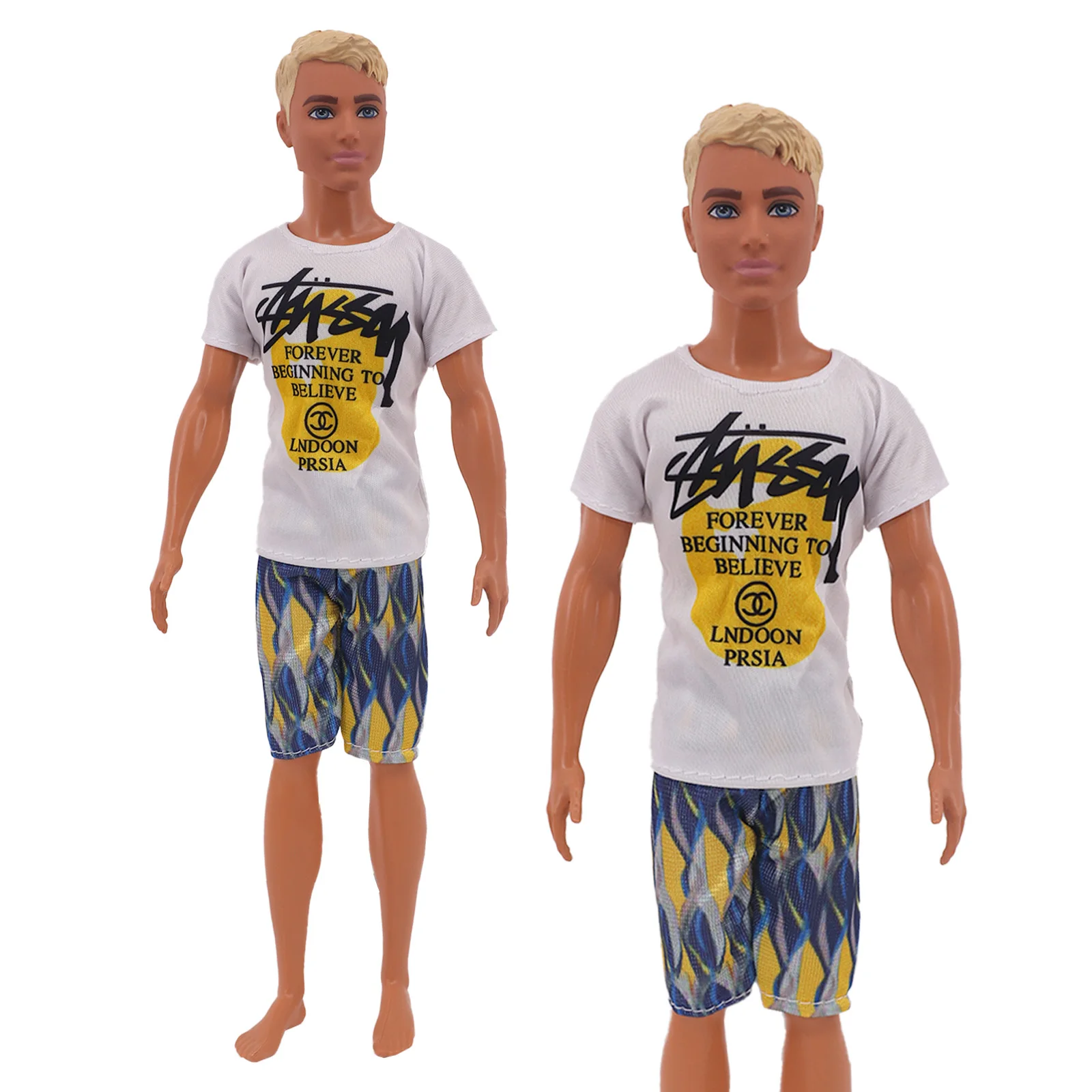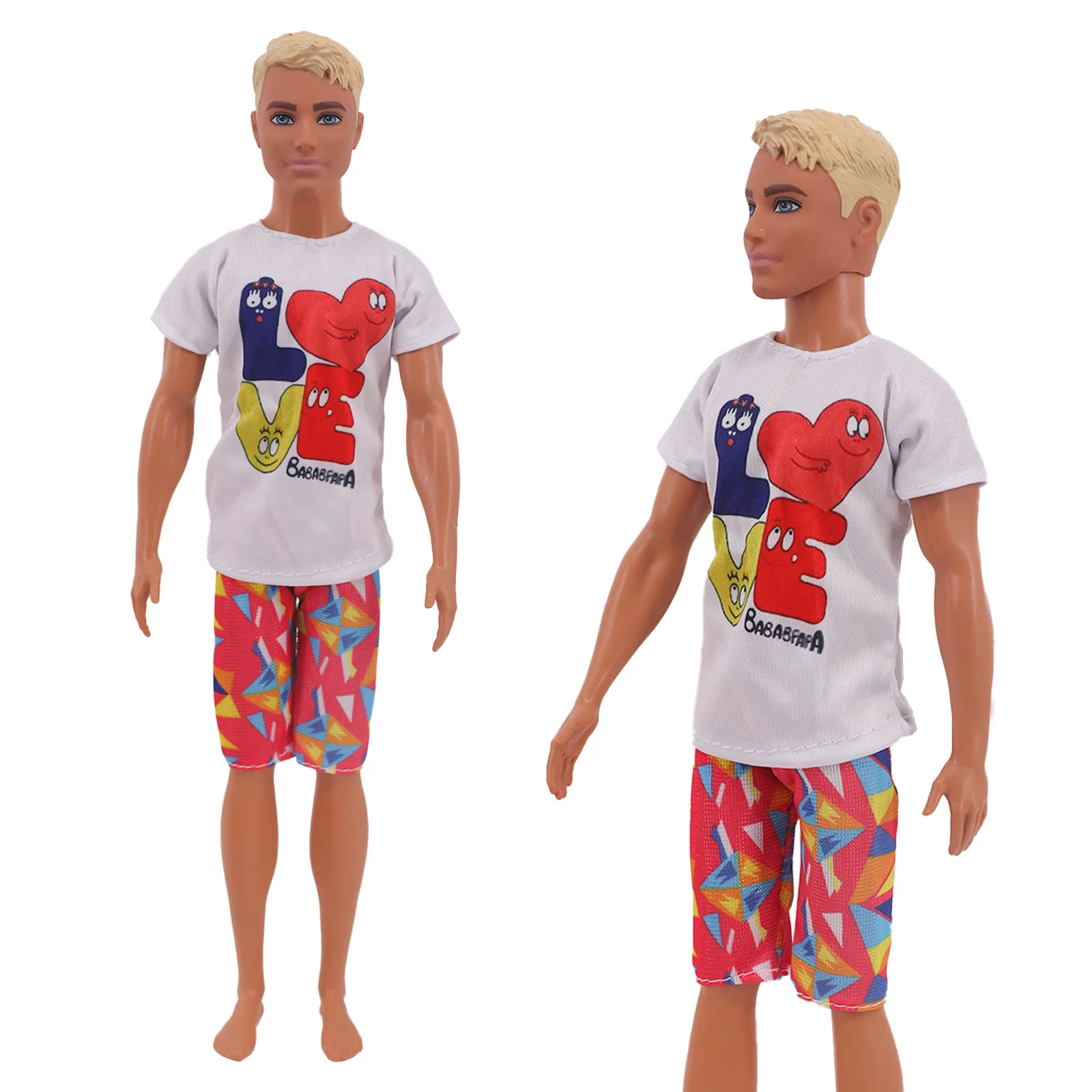 Handmade Ken Doll Clothes T-shirt + Trousers For Barbie Dress Accessories Fashion Daily Clothing Toys For Gils Birthday Gift