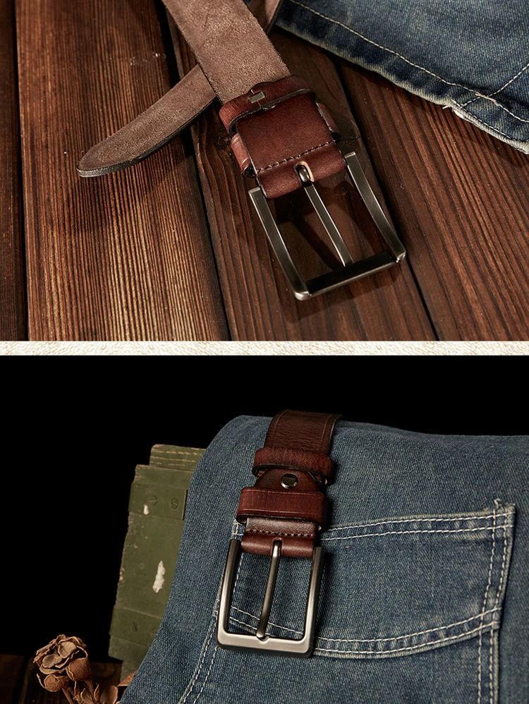 Choose Options Quick view Handmade Vintage Top Layer Cowhide Pants Belt For Men Retro Genuine Leather Copper Pin Buckle Jeans Strap Casual Cow skin Belt $53.84