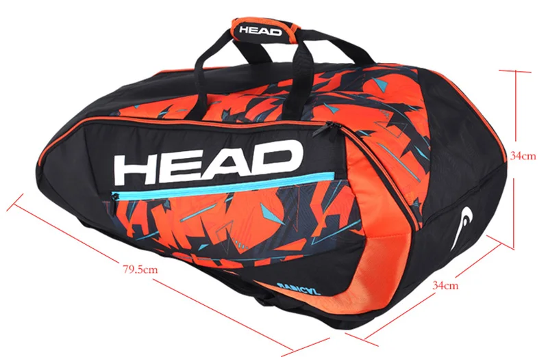 Choose Options Quick view Original HEAD Tennis Bag 6-9 Tennis Rackets Bag Padel Tenis Raquete Badminton Squash Bag Large Capacity Tennis Racket Backpack $128.49 - $132.11 Description Name: Head Tennis Backpack Color: Black Orange Size: 75cmX30cmX32cm. Material: PU, Polyester, Nylon Used people,men,women,kids,adult