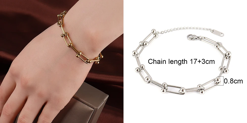 -316L Stainless Steel Link Chain Bracelets for Women Bohemian Heart Pendant Jewelry Beads Bangle Exquisite Lock Bracelets Chunky U Chain Bracelets Wholesale