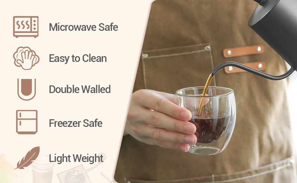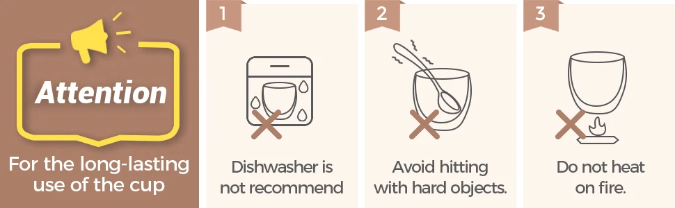 Wash in warm, soapy water before first use and dry thoroughly. For all subsequent uses, wash and dry by hand or pop in the dishwasher. double wall glasses are safe to use in the freezer, oven and microwave.