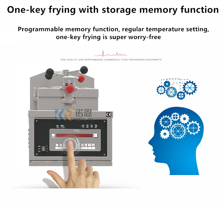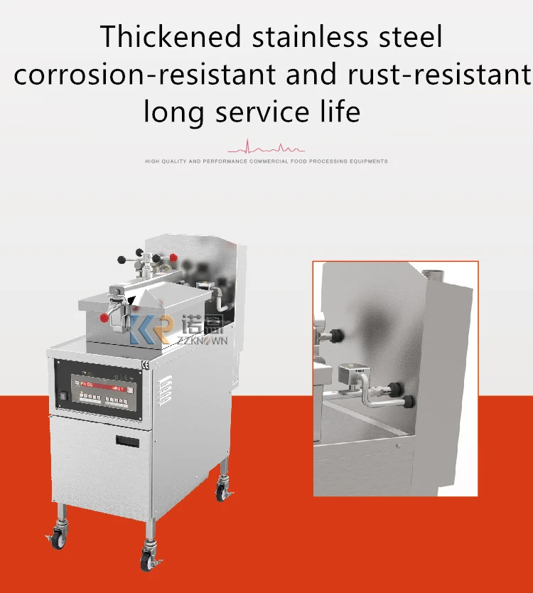 Gas pressure fried chicken furnace series devices is the company absorbing foreign advanced technology, development and production of the latest fried chicken oven fried chicken production process according to the characteristics of Western and traditional Chinese roast chicken. The whole body of stainless steel, computer control panel automatically control of exhaust pressure. Using low-temperature high-pressure principle, fried food crisp outside and tender, bright color, but also fried duck, fish, pork, beef, mutton and other meat and potatoes and other vegetables.