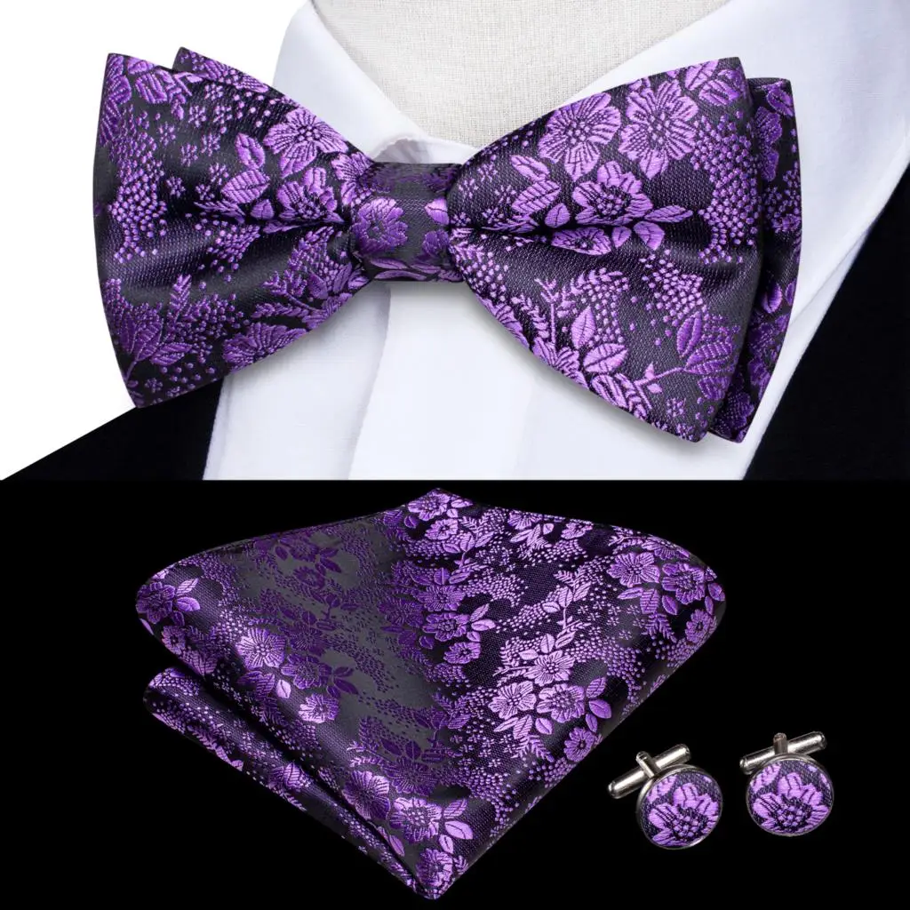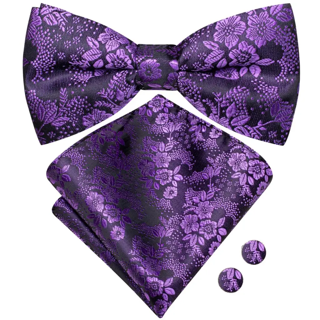 Choose Options Quick view Barry.Wang Formal Black Silk Mens Bow Tie Jacquard Plain Solid Pre-Tied Bowtie Hanky Cufflinks Set Male Wedding Business Prom $3.00 - $14.80 8602