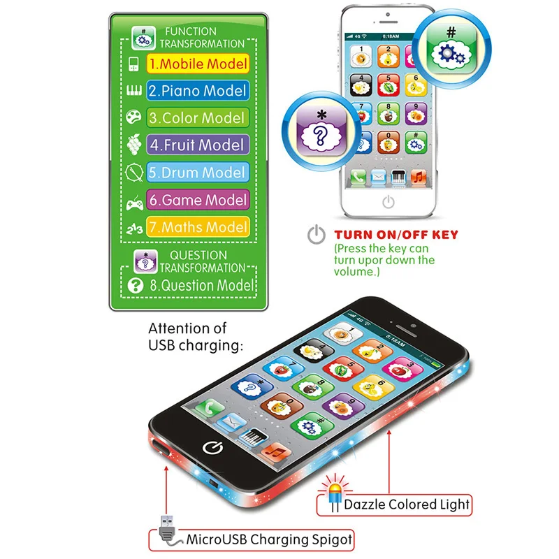 Language Chinese, EnglishProduct name: Baby mobile phone toy music sirenMaterial: ABSBattery: 3 AAA batteries (Note: not included in the package)Size: 8*14*3CMPackage Included:1 baby cell phone toy...