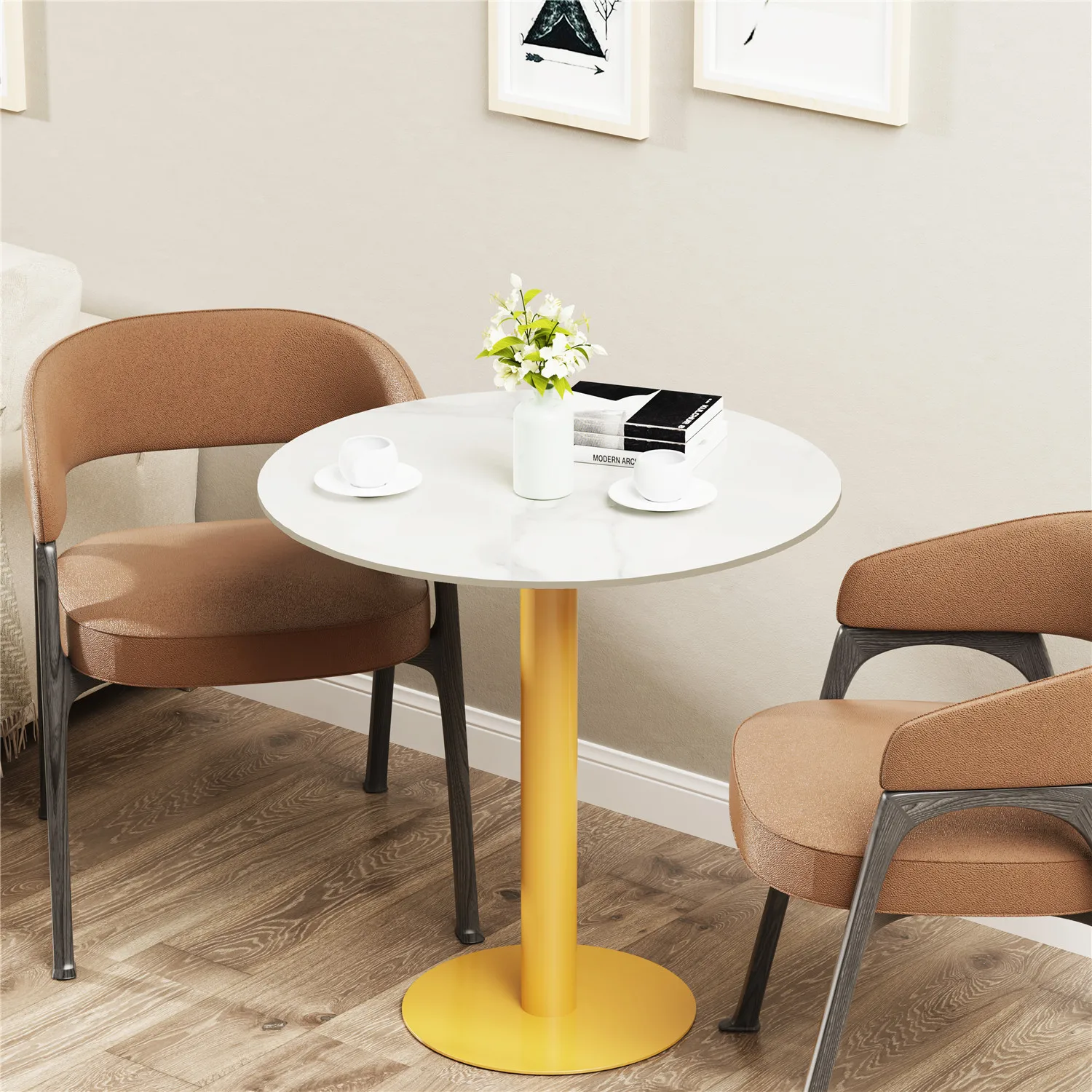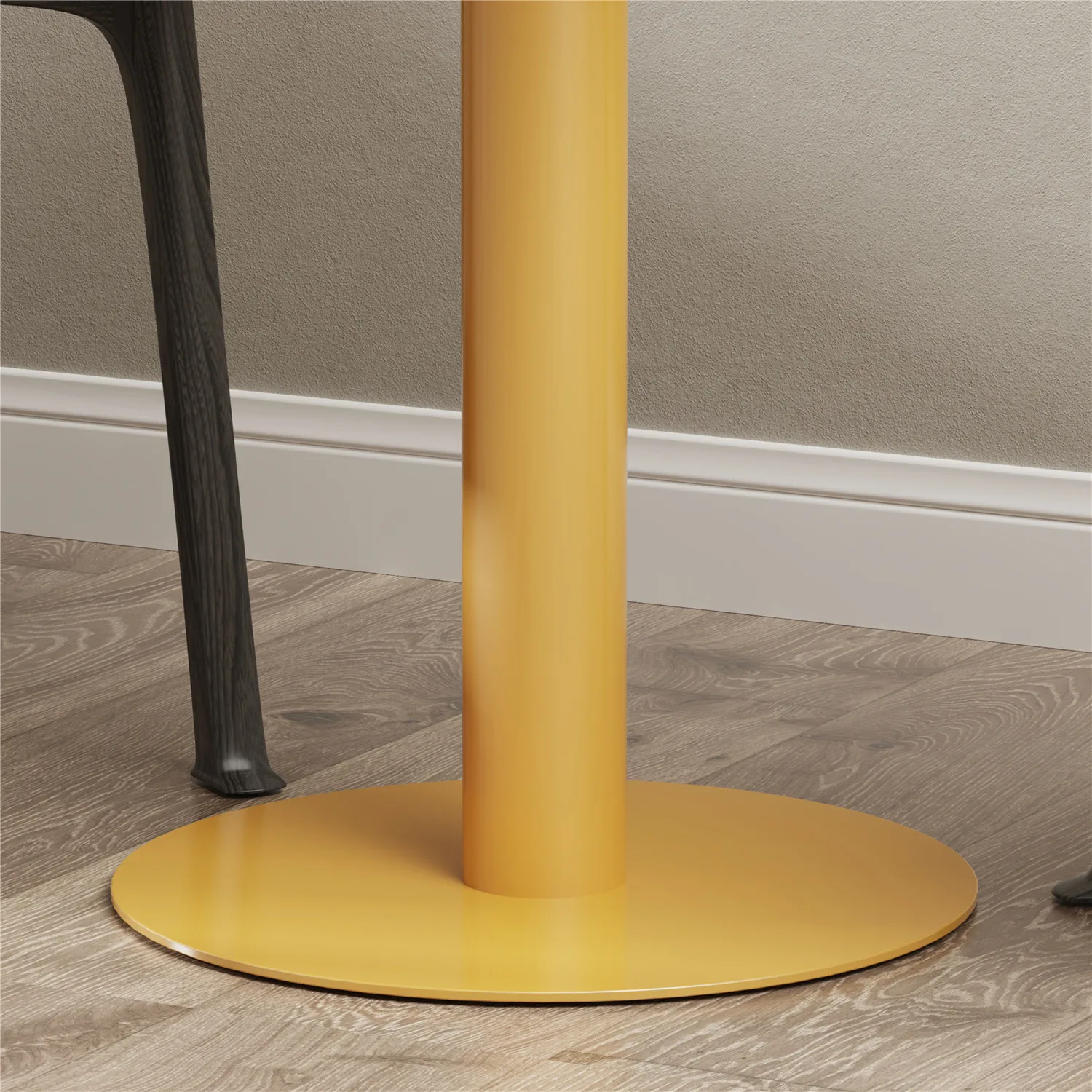 Contemporary white table, perfect for a breakfast table as well as bistro table. Built in natural sintered stone-top that's non-porous and hygienic, easy to clean, very classic looking, adds a sophisticated element to your space. The black/ golden-painted base ensure stability, easy to build, the size will fits for tight spaces very well