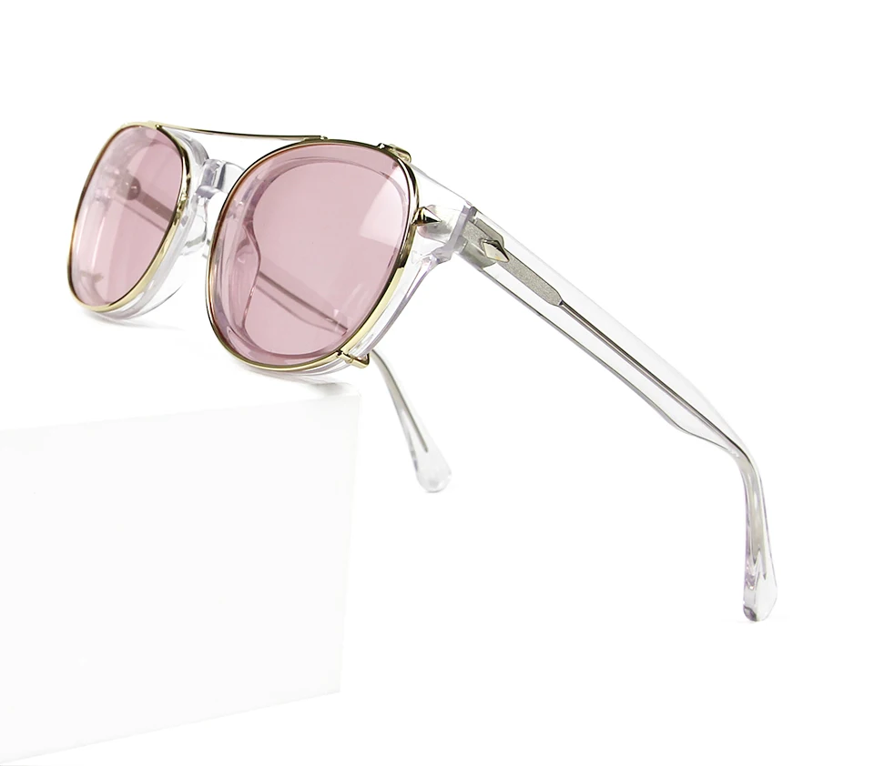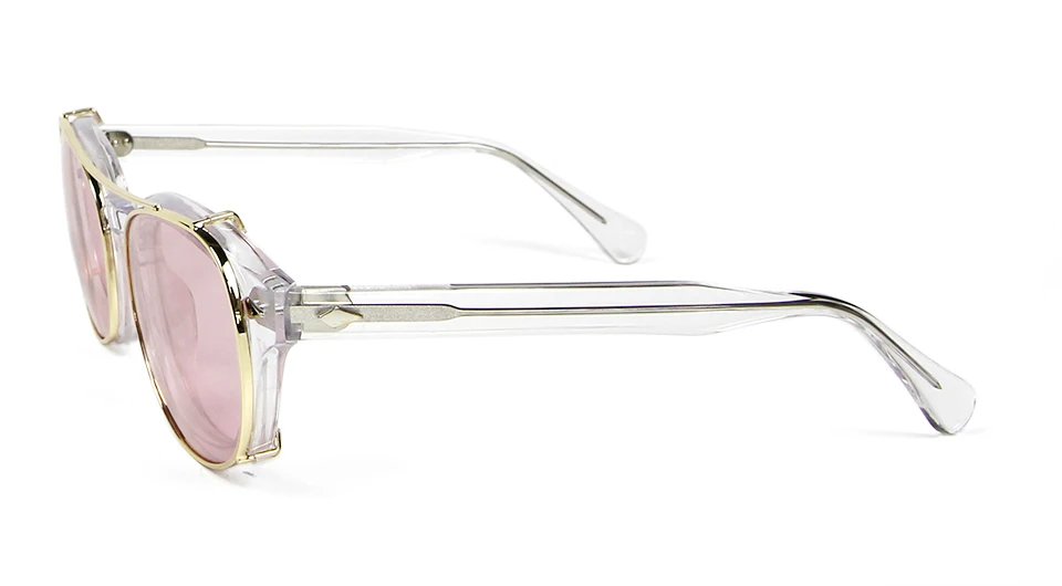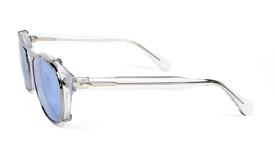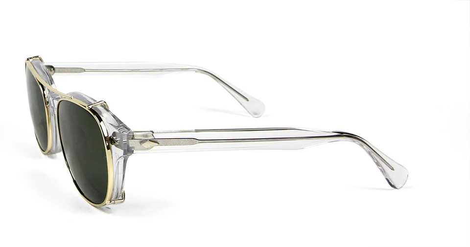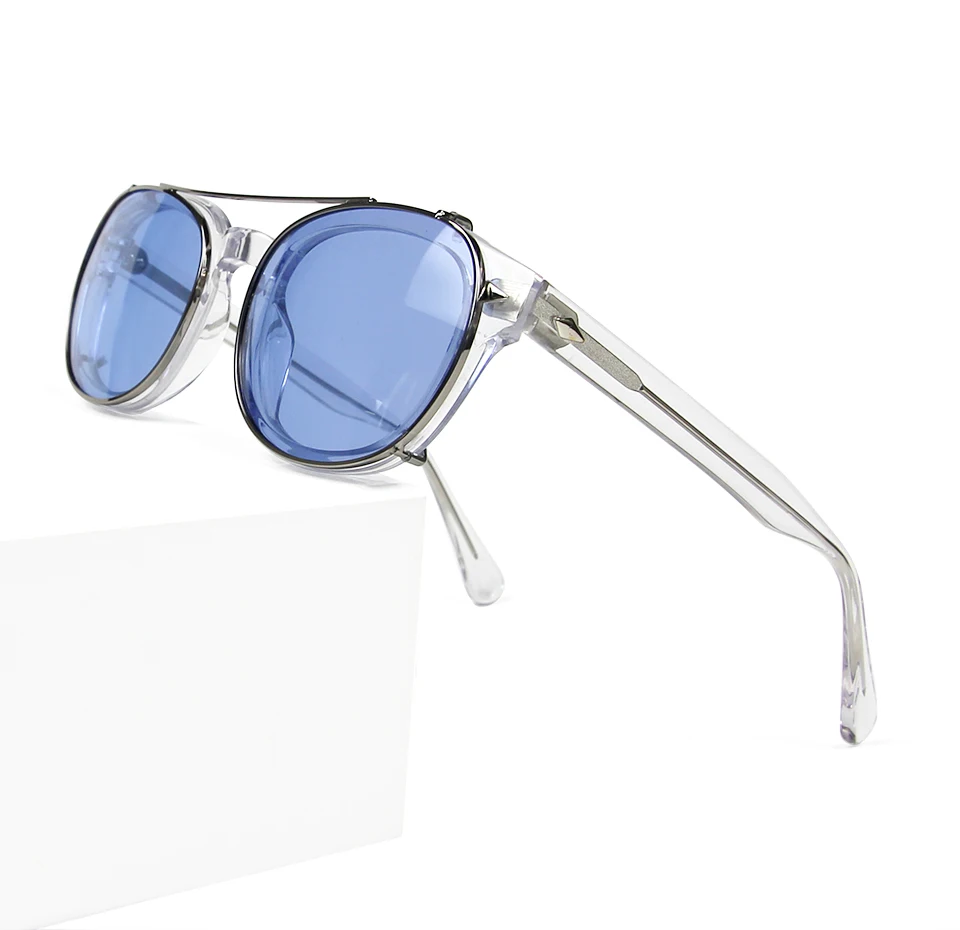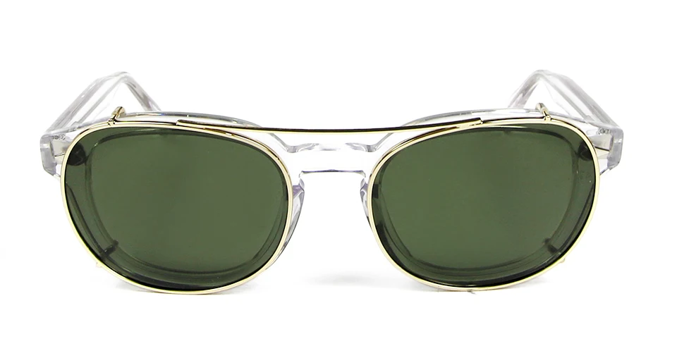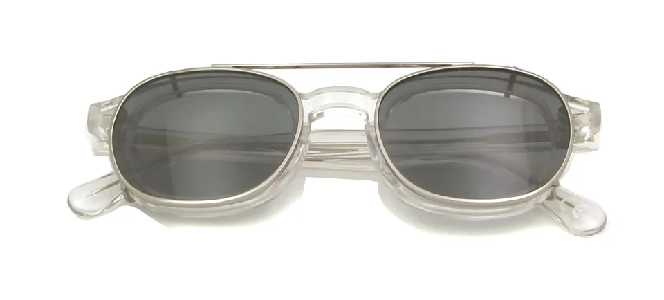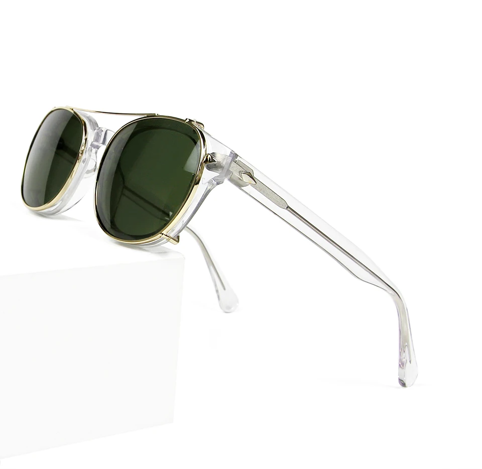 High Quality Crystal Clear Frame Glasses Men Round Transparent Acetate Sunglasses Polarized Clip On Sun Glasses Johnny Depp