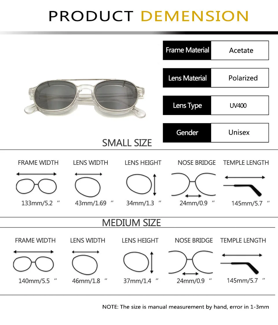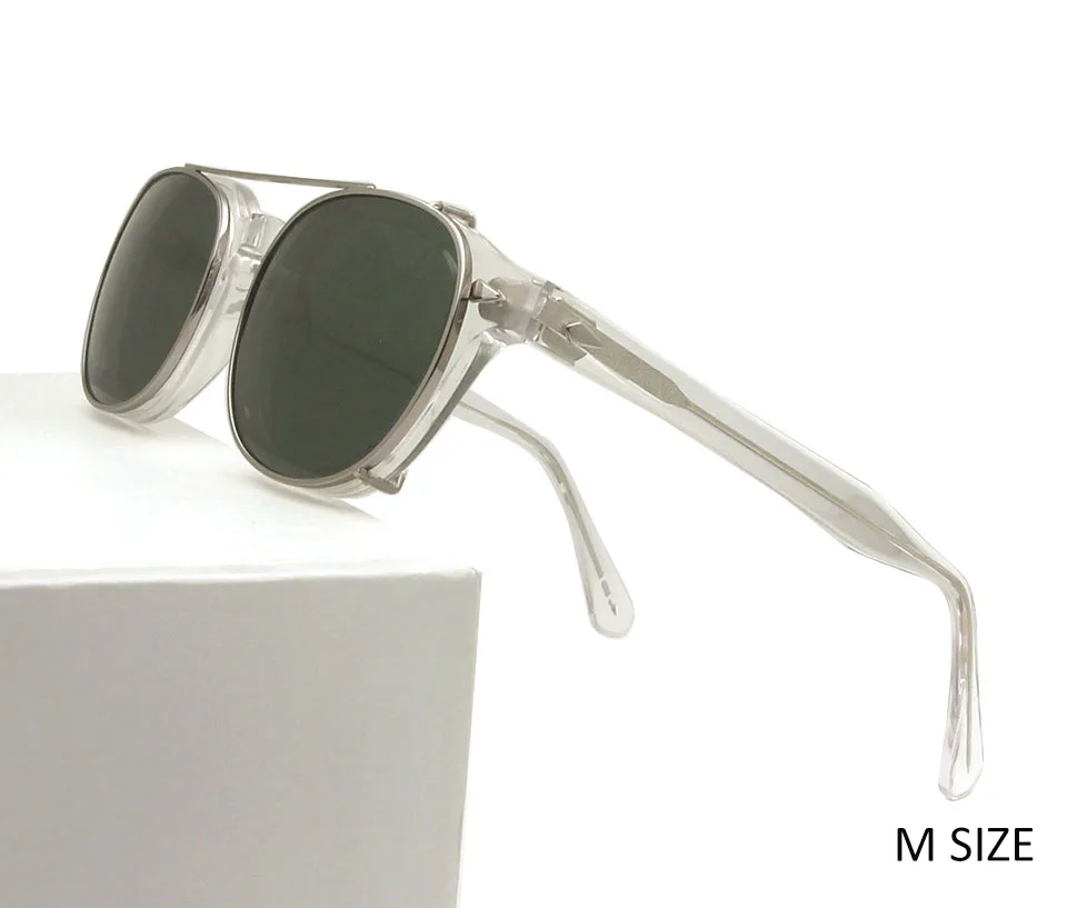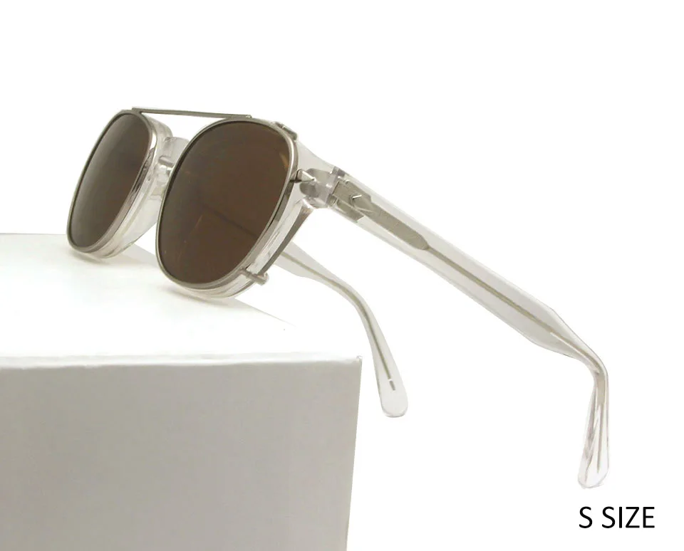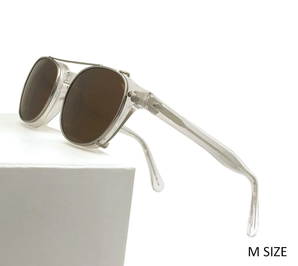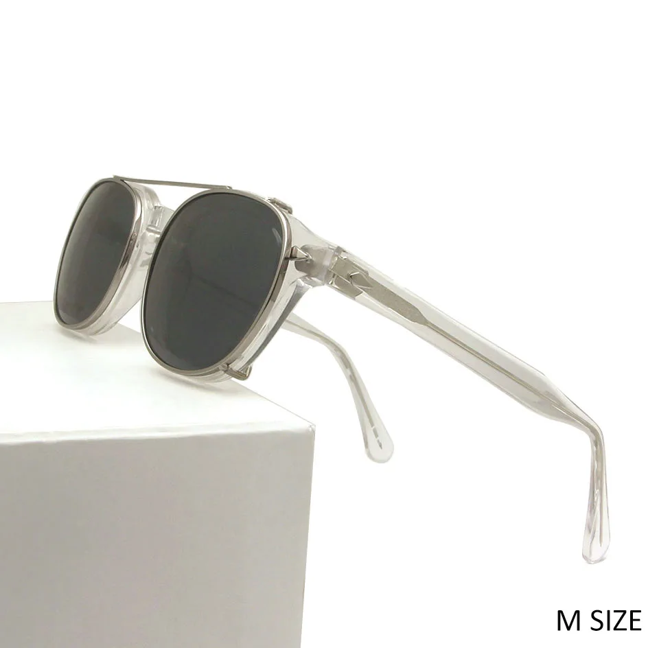 High Quality Crystal Clear Frame Glasses Men Round Acetate Sunglasses Polarized Clip On Sun Glasses Johnny Depp Style Small Medium |