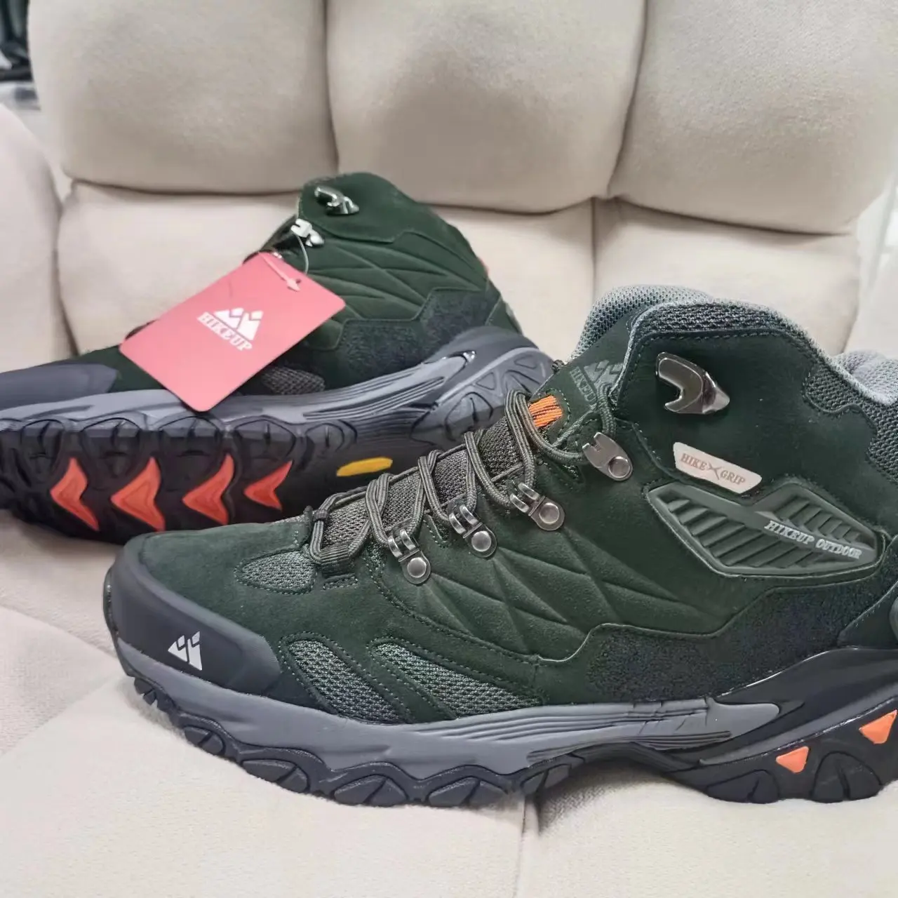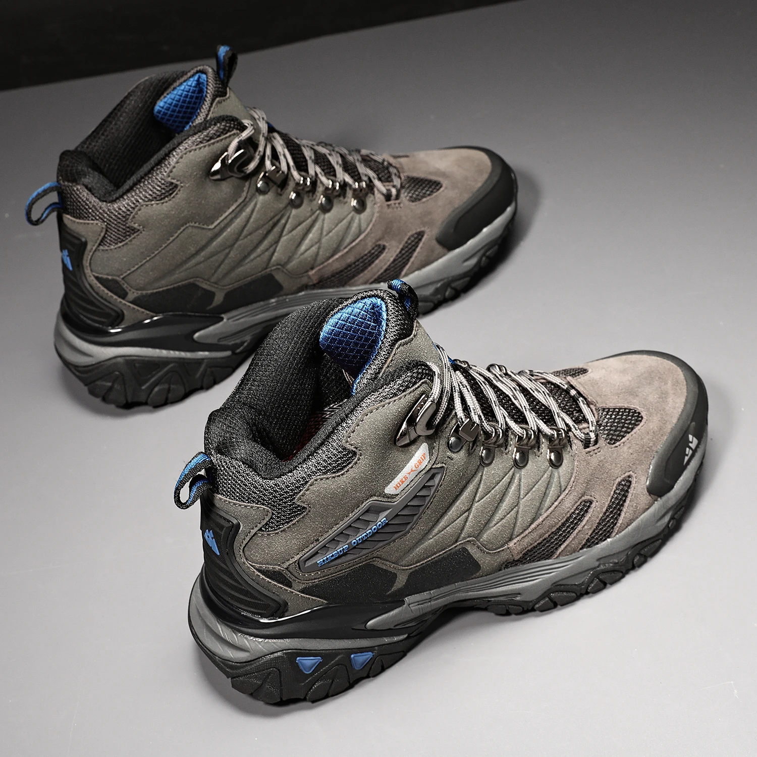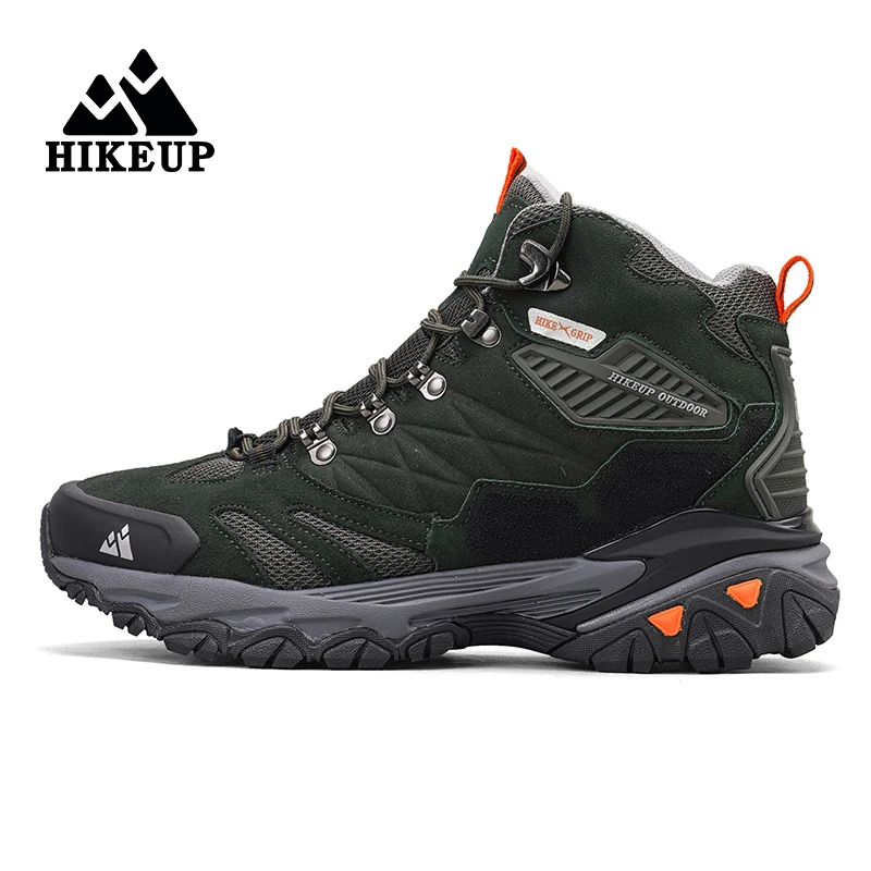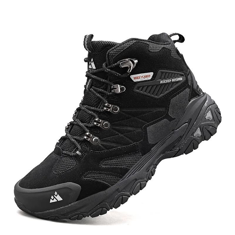 HIKEUP Winter Boot Men Outdoor Hiking Boots Suede High Top Trekking Men Shoes Rainproof Tactical Combat Military Boots