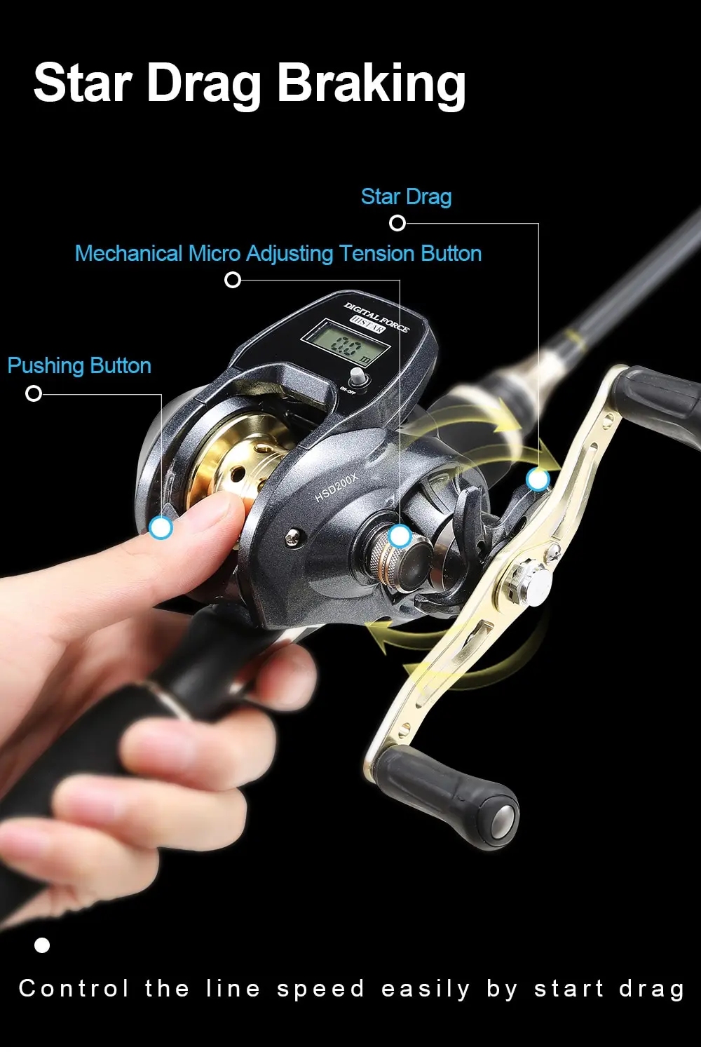 • Waterproof Baitcasting Digital Fishing Reel :The reel is waterproof, making it suitable for use in all weather conditions and environments. It also has a digital fishing feature that makes it easier to track your catches.