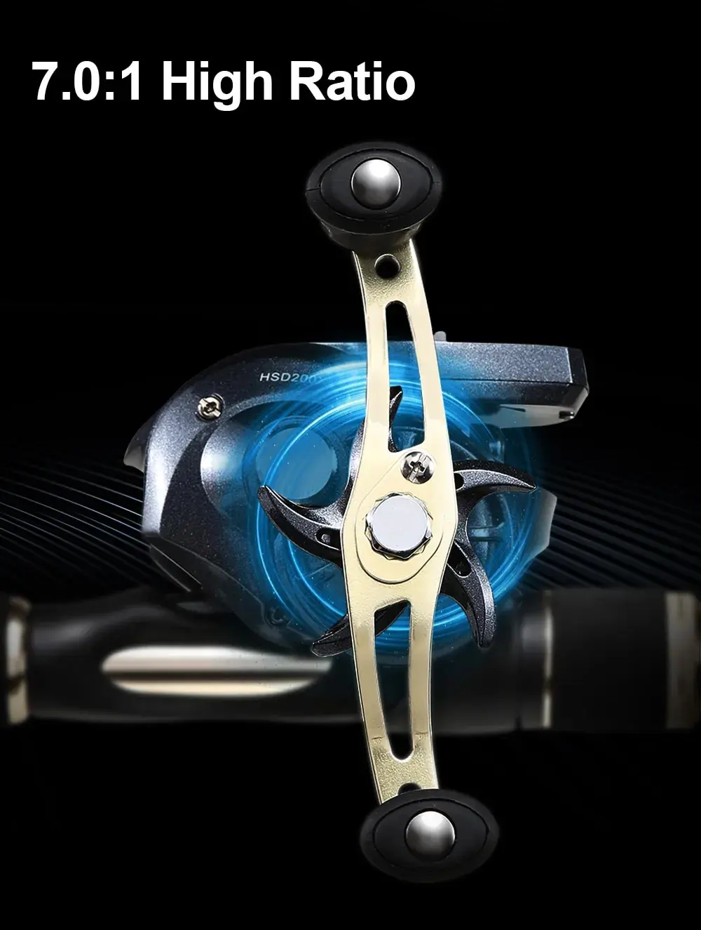 • Long Casting 7.0:1 High Ratio :The reel has a long casting distance, allowing you to reach further into the water and increase your chances of catching fish. Its high ratio of 7.0:1 ensures that you can handle heavy loads and drag power with ease.
