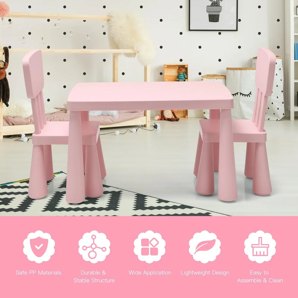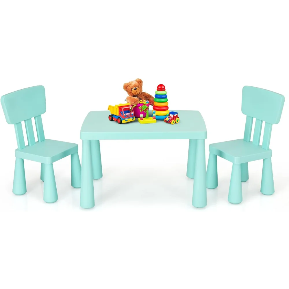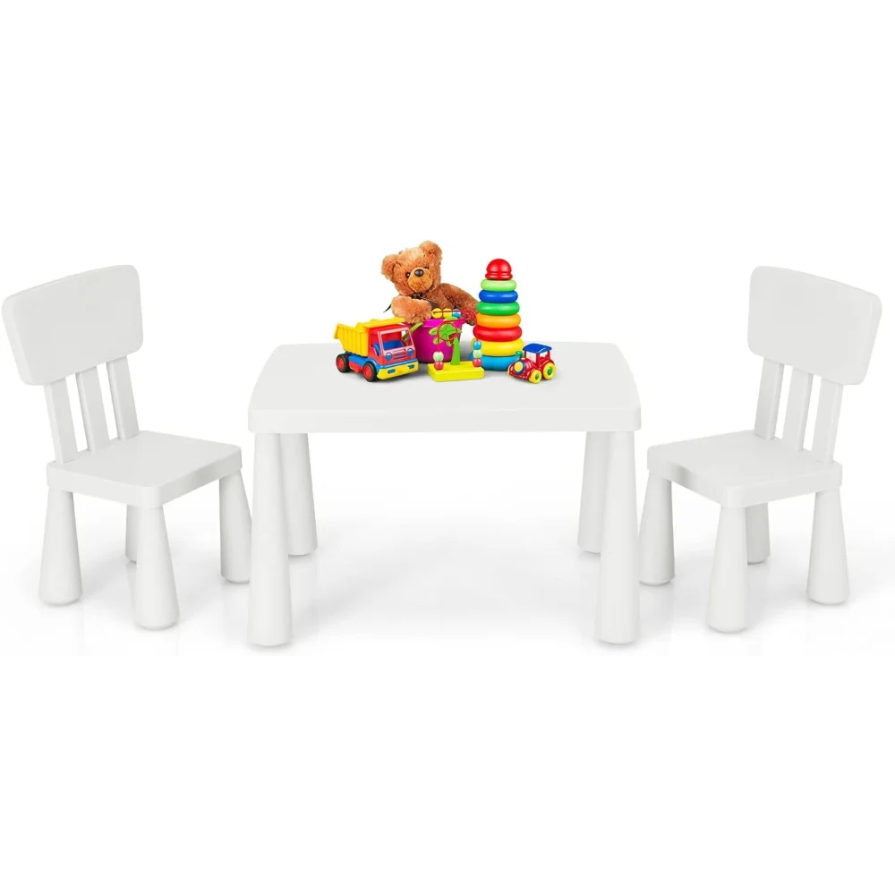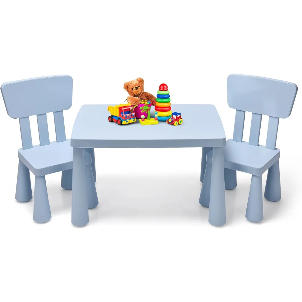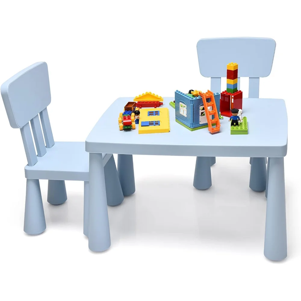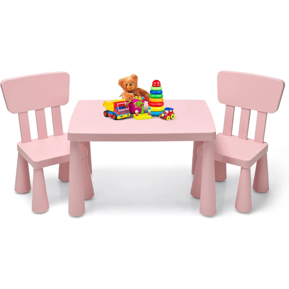 - ✍️【3 Piece Kids Table and Chair Set】: This kiddy-sized toddler furniture set includes 1 square table and 2 chairs with backrest, offering the best place for kids to write, draw, play with his/ her friends. The compact size in lightweight design enables this toddler table chairs can placed in playroom, living room, daycare, kindergarten and so on.