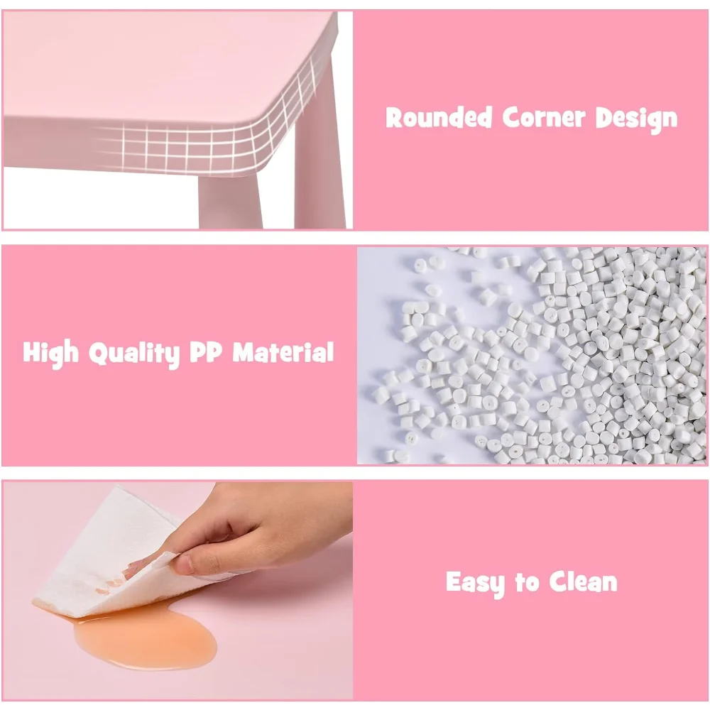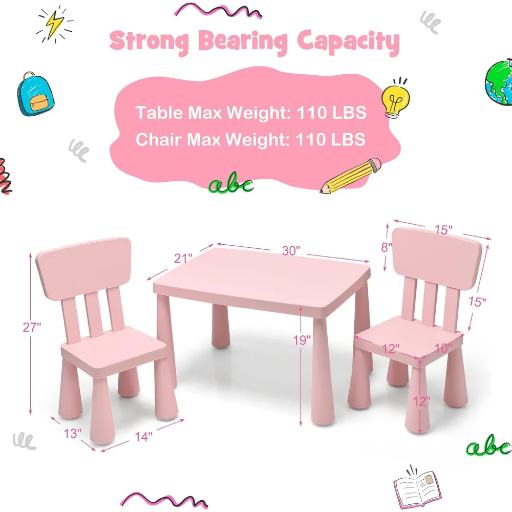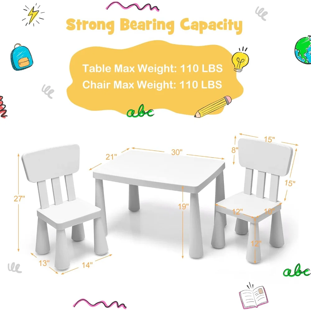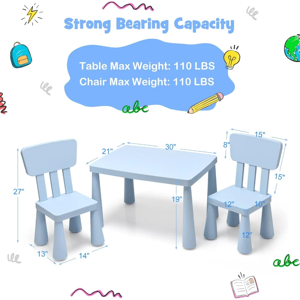 - ✍️【Sturdy & Durable Construction】: Made of healthy and durable PP material, this kids table and chair set is available for long-time use and accompany kids in 1 – 7 years old. And the strong load-bearing capacity-110 lbs ensures its good stability and won't shake after long-time use.