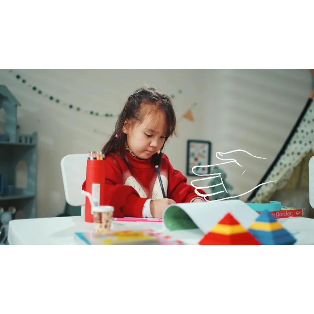 - ✍️【Ergonomic Backrest & Height Gap】: Featuring the curved backrest, the ergonomic height gap between the chair and table set perfectly fits kids' body line and help kids develop the premium sitting posture in the gold growth period. And the round polished corner prevents from the accidental hurt.