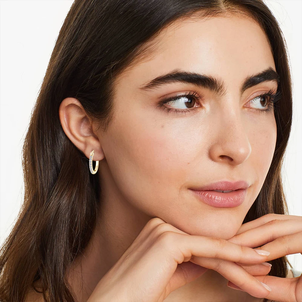 Sweetrain Hoops 1.8mm Moissanite Earrings For Women Real 925 Sterling Sliver Plated Yellow Gold Hoop Earring Fine Jewelry Christmas Gifts