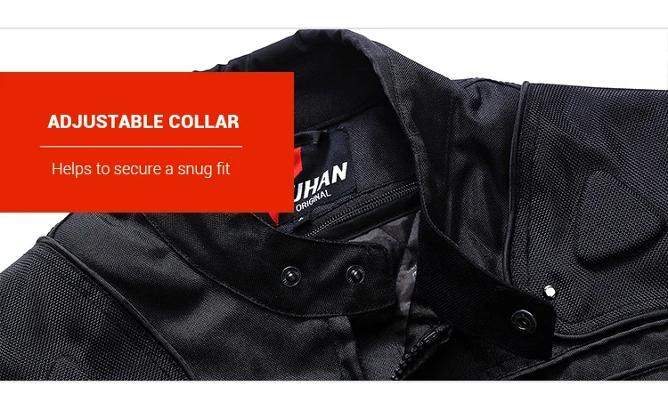 Adjustable cuff, collar, hem and waist, improves the range of fit and comfort