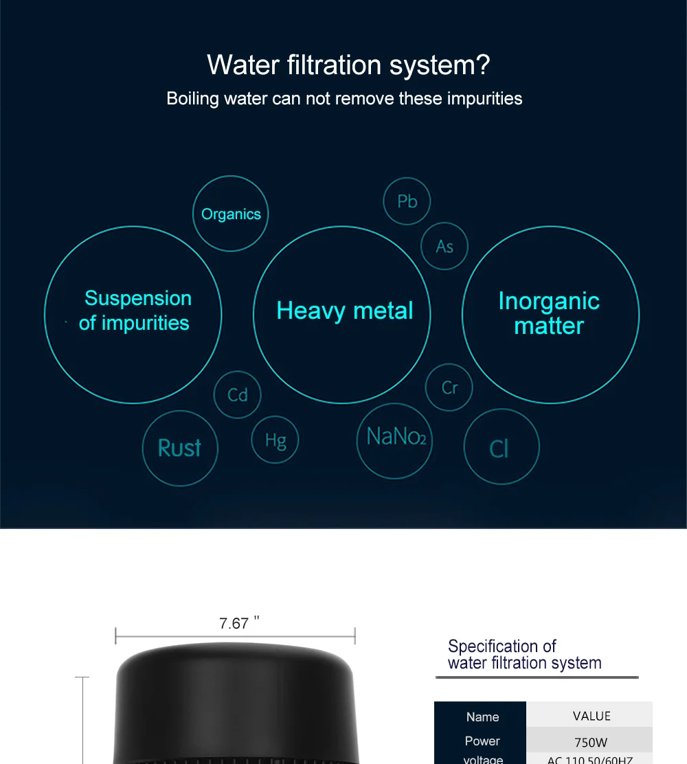 Removes contaminants such as bacteria, particles, dissolved solids.