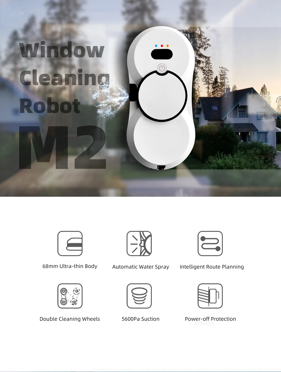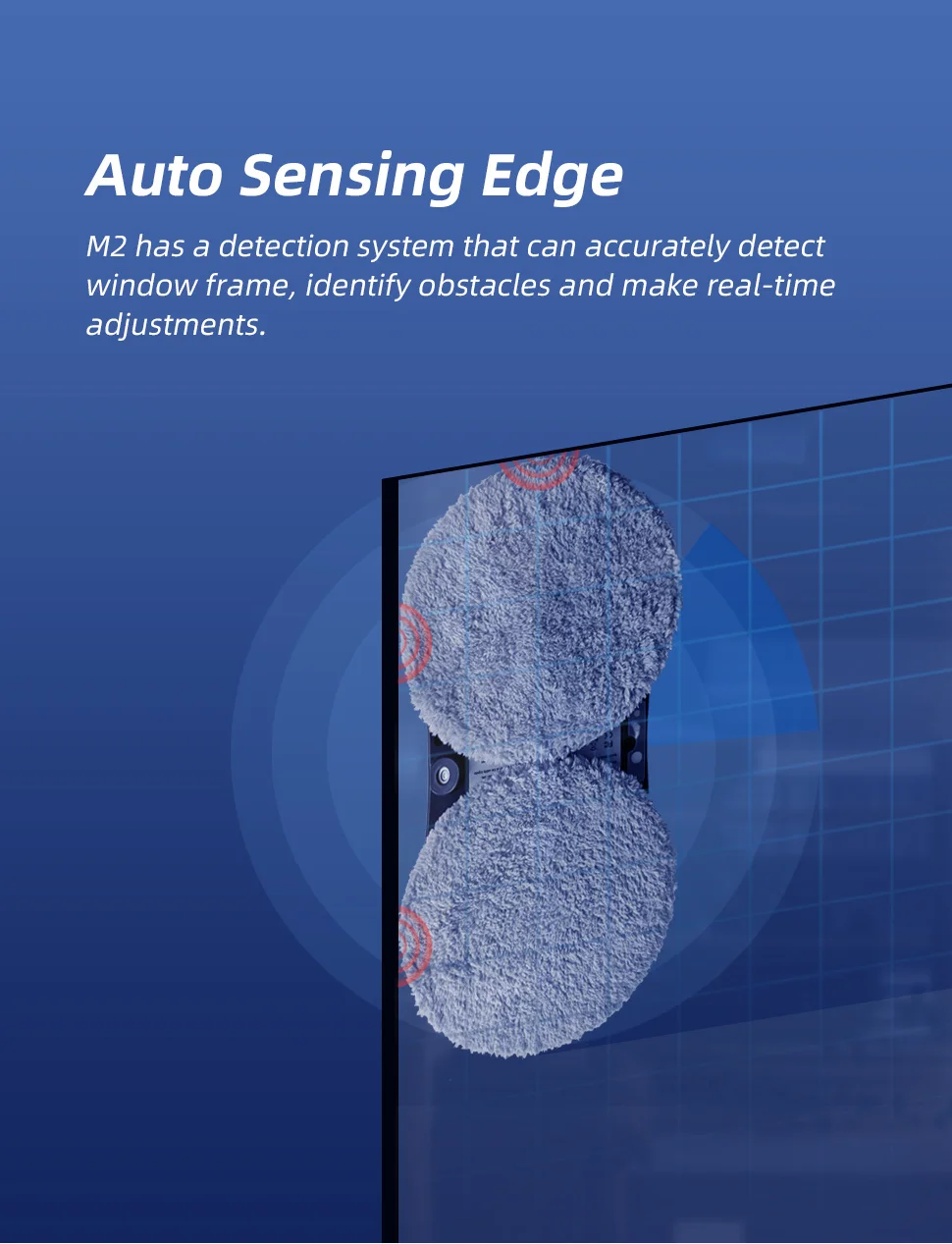 M2 has a detection system that can accurately detect window frame, identify obstacles and make real-time adjustments.