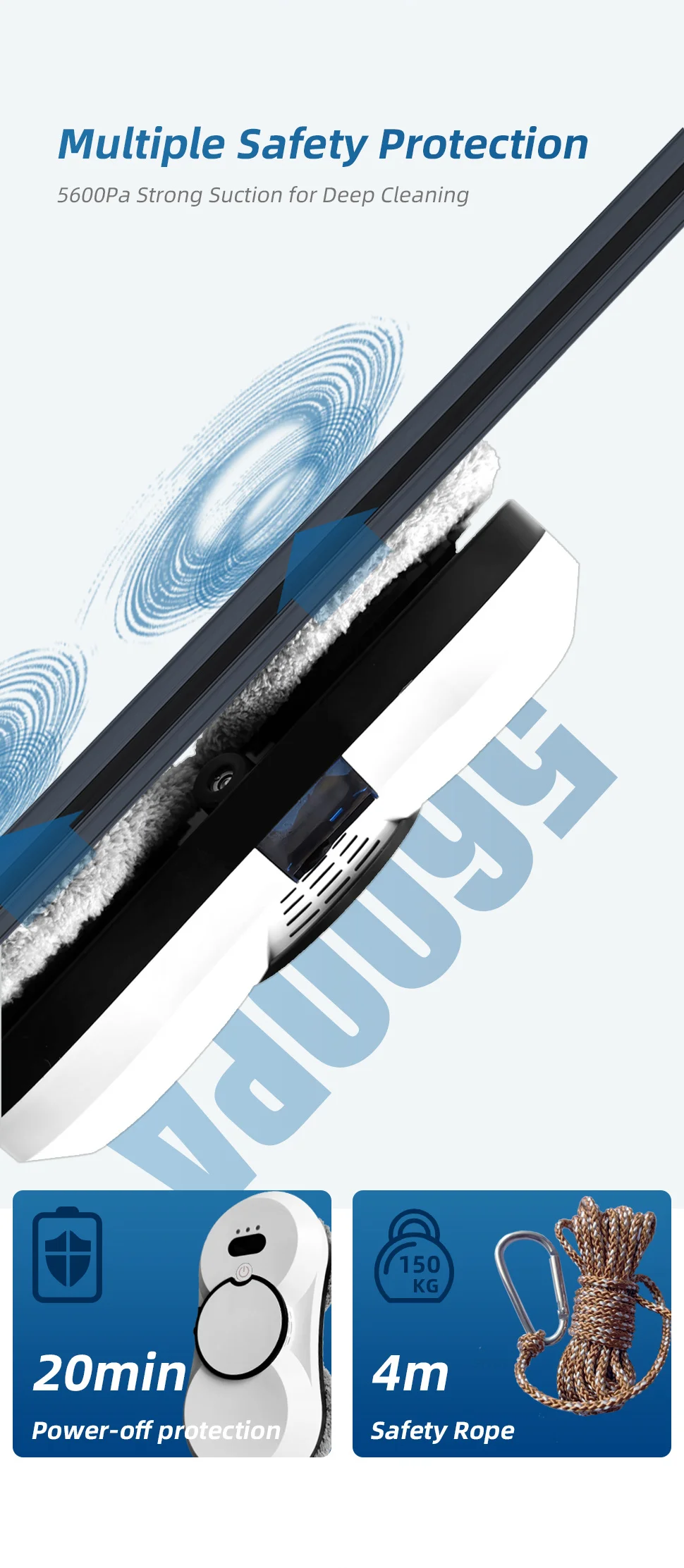 Double Cleaning Wheels|5600Pa Suction|Power-off Protection