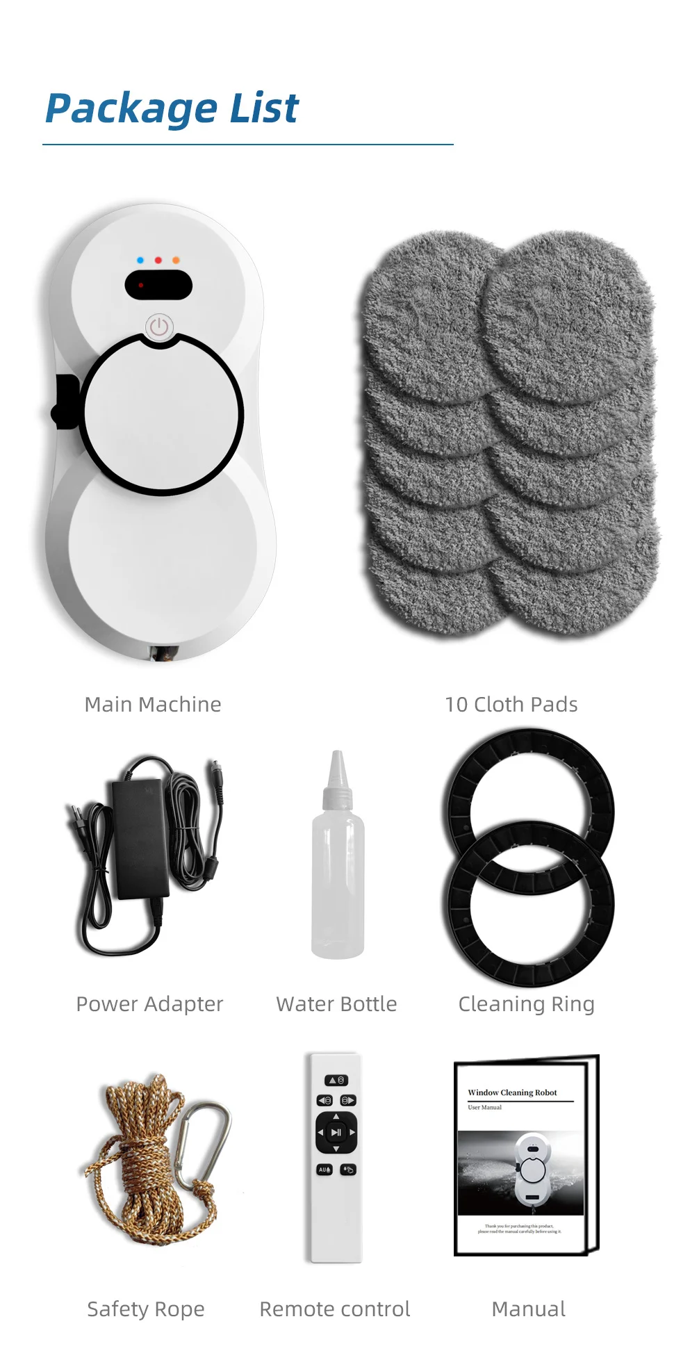 The tight fit cleaning suction cups adhere to the contact surface and rotate repeatedly, simulating the "alternate climbing" principle of a gecko, making the cleaning more effective.