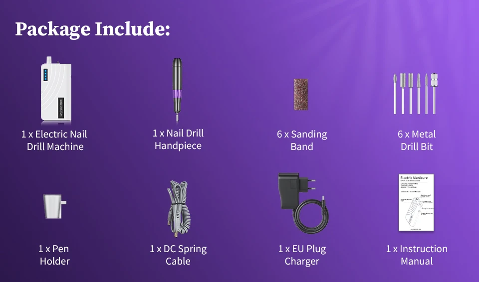 Item Type: Multifunctional rechargeable electric nail drill and accessories