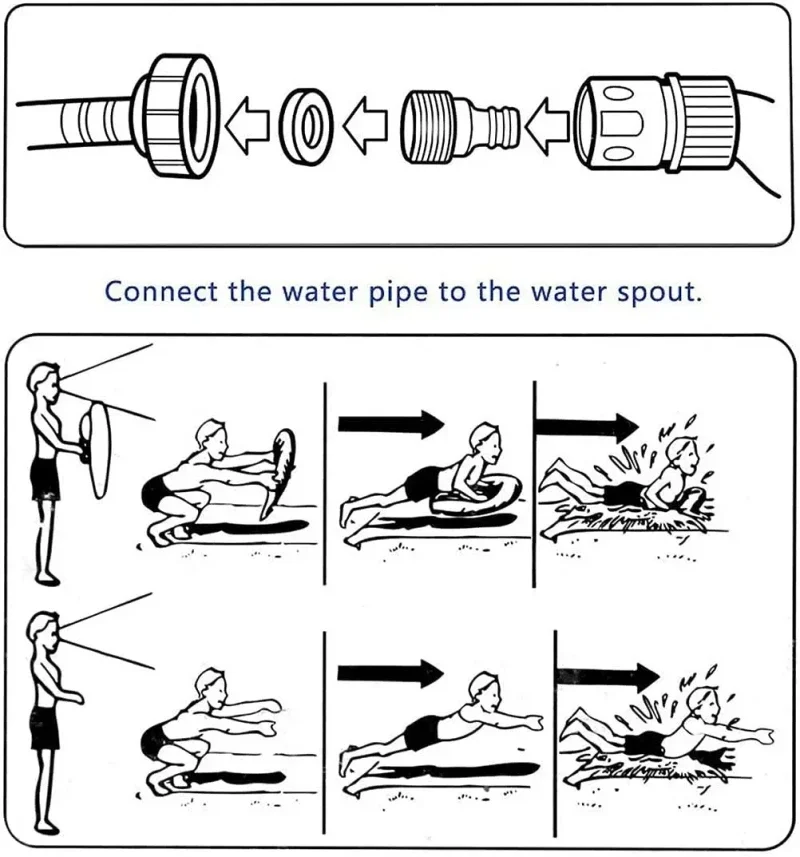 4.Effortless Installation: It's no exertion to set up the slip water slide. Connect a garden hose with the lawn slide, the water will spray out once it is filled. It also comes with a Water Control Valve to regulate the water pressure and flow, and prevent water pipe from cracking due to excessive water pressure.