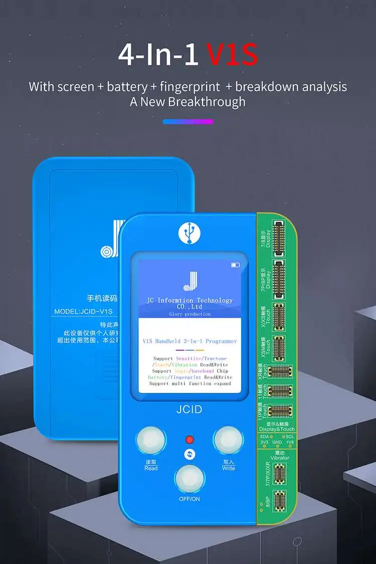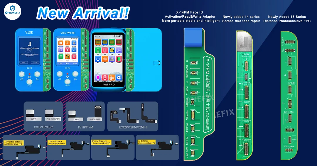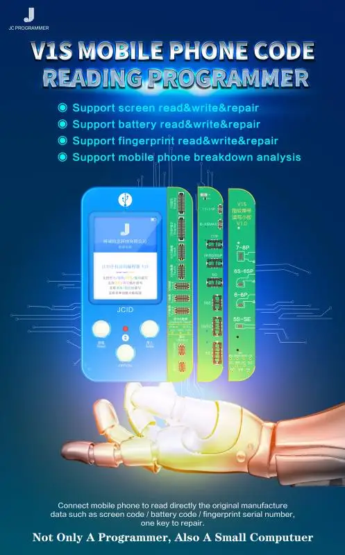 JC V1SE Mobile Phone Code Reading Programmer for iPhone 7 8 X XR XS MAX 11Pro MAX 12 12MINI 12Pro/Max/13/13MINI/13Pro/Max 14 Series Dot matrix Face ID Repair / Screen Code / Battery Code / Fingerprint Serial Number Code Reading Programmer