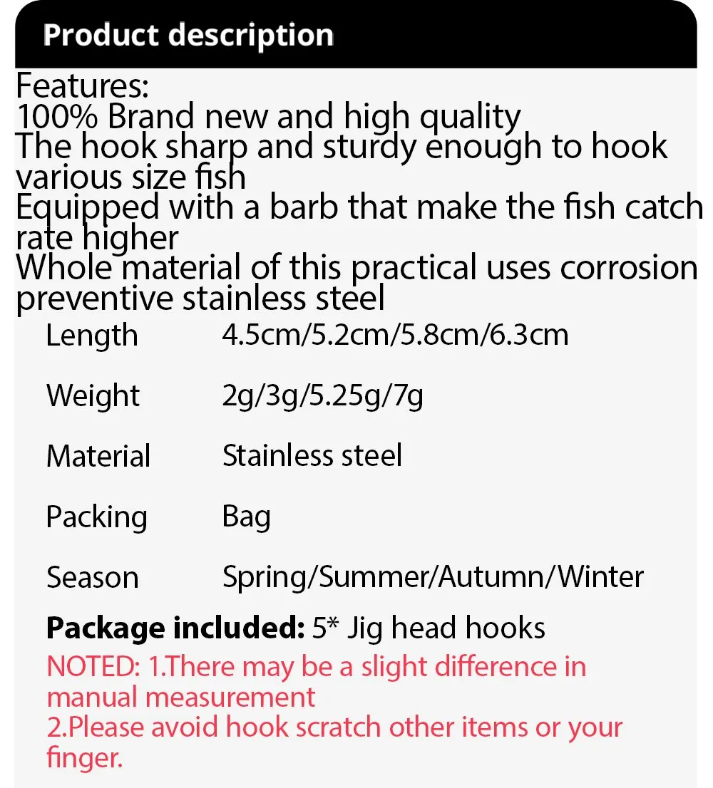 Jig head weight:2g/3g/5.25g/7g
