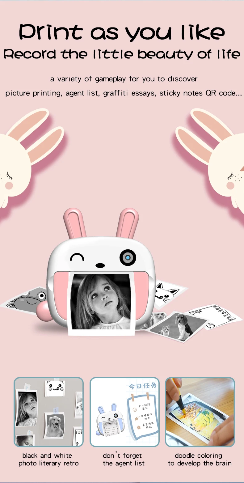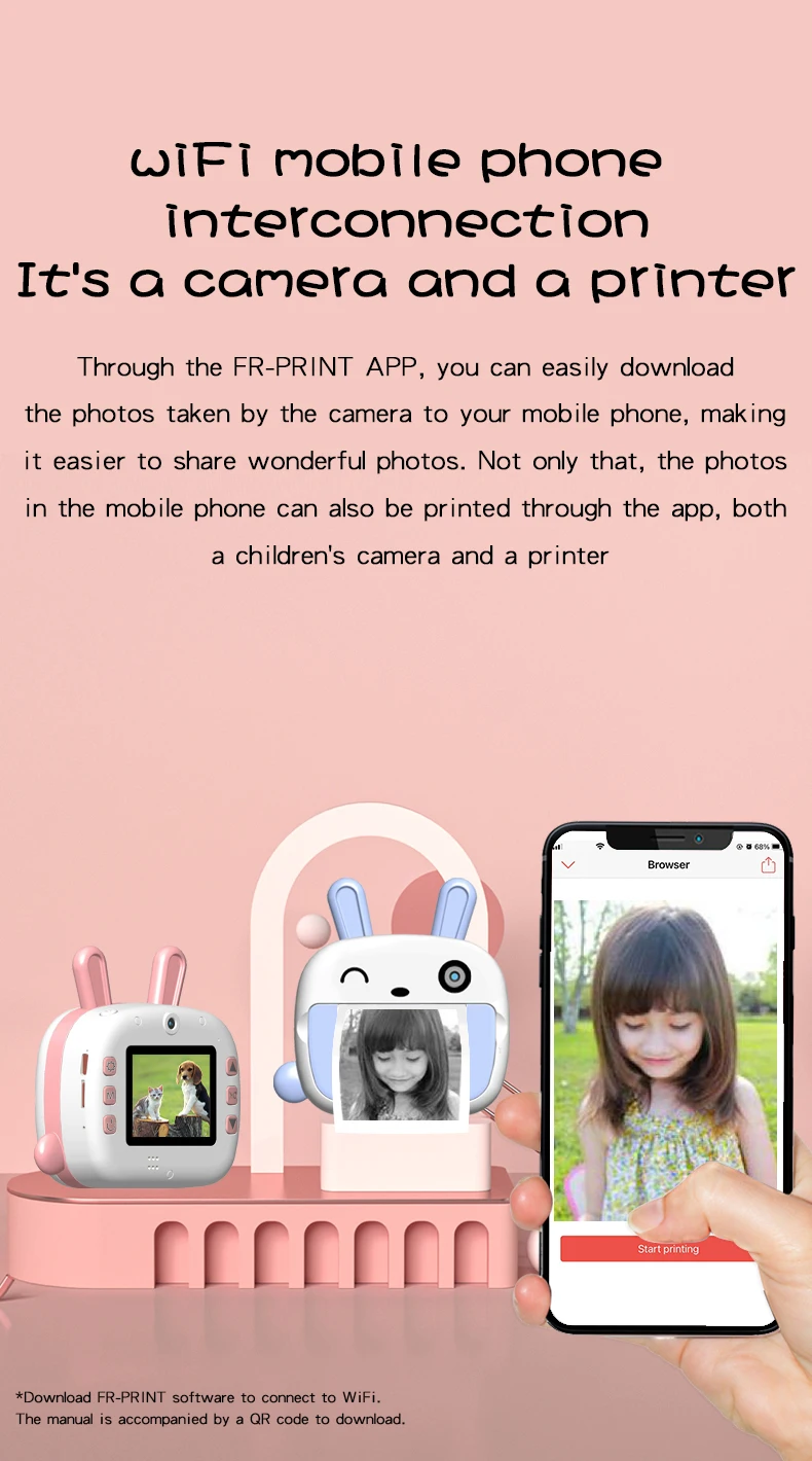 Functions: WiFi Print, photo, video, continuous shooting, timing, playback, FM.