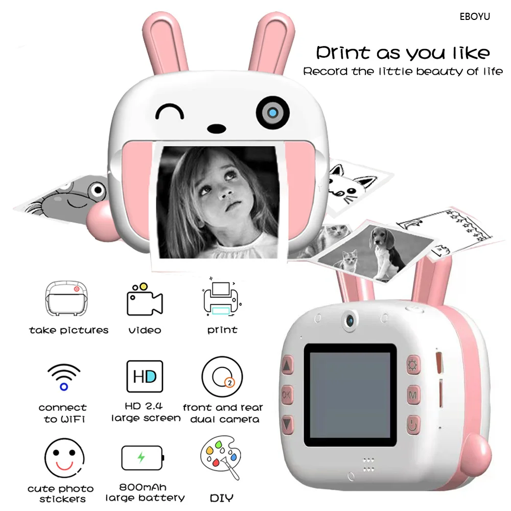 JJRC V20 WiFi Printing Kids Digital Camera Gift for Kids 2.4 Inches HD Screen 12MP Video Camera Shockproof Children Selfie Toy