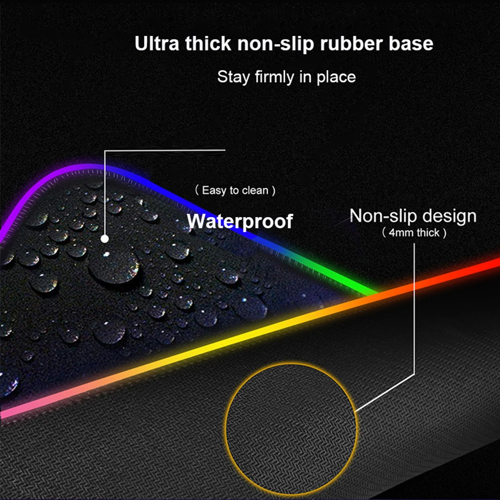 5.Size: RGB LED mouse pad 29x25cm 30x60 cm 30x70 cm 30x80 cm 30x90 cm 40x90 cm