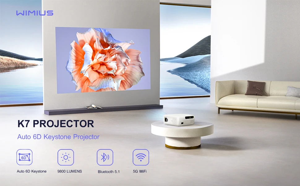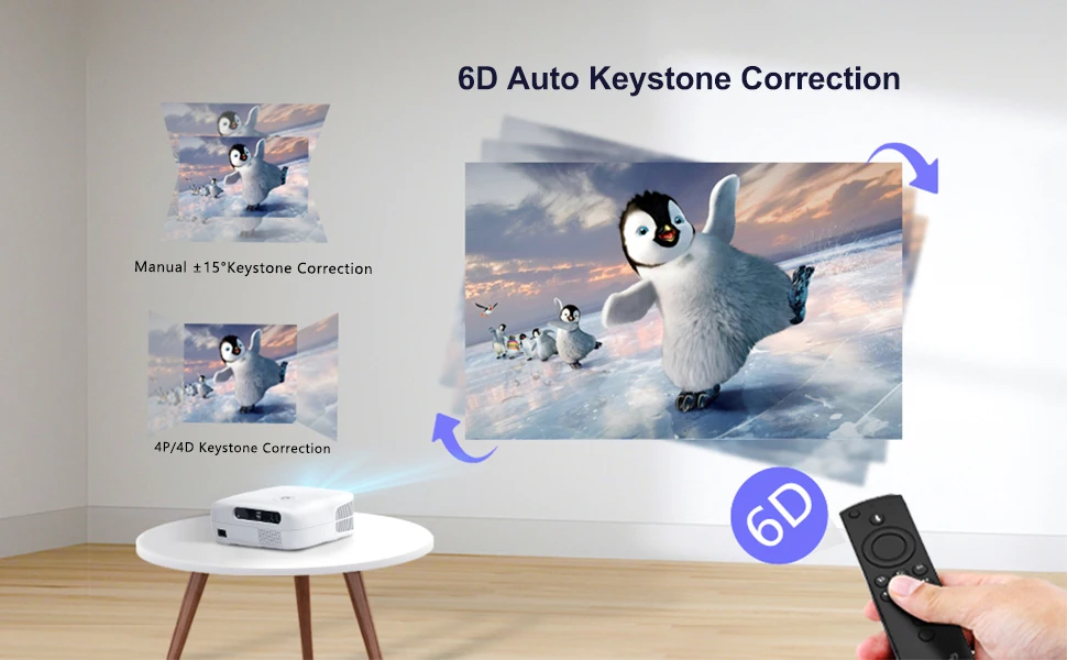 ⚽【Unique Auto 6D Keystone Correction & 4P/4D Keystone】WiMiUS K7 is the latest wifi bluetooth video projector in 2022. It’s with innovative auto 6D keystone correction, which means no matter where you put the projector, this lcd projector will automatically correct the image to rectangle. No need to adjust on remote click by click. In addition, it also has traditional 4-point and 4D keystone. Very easy to adjust the image shape.